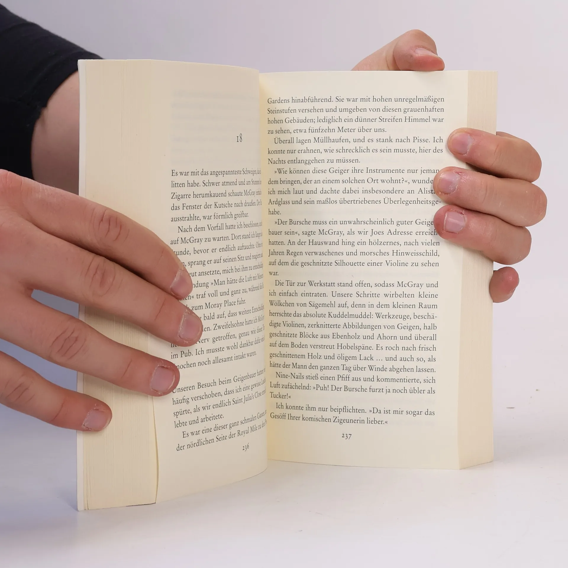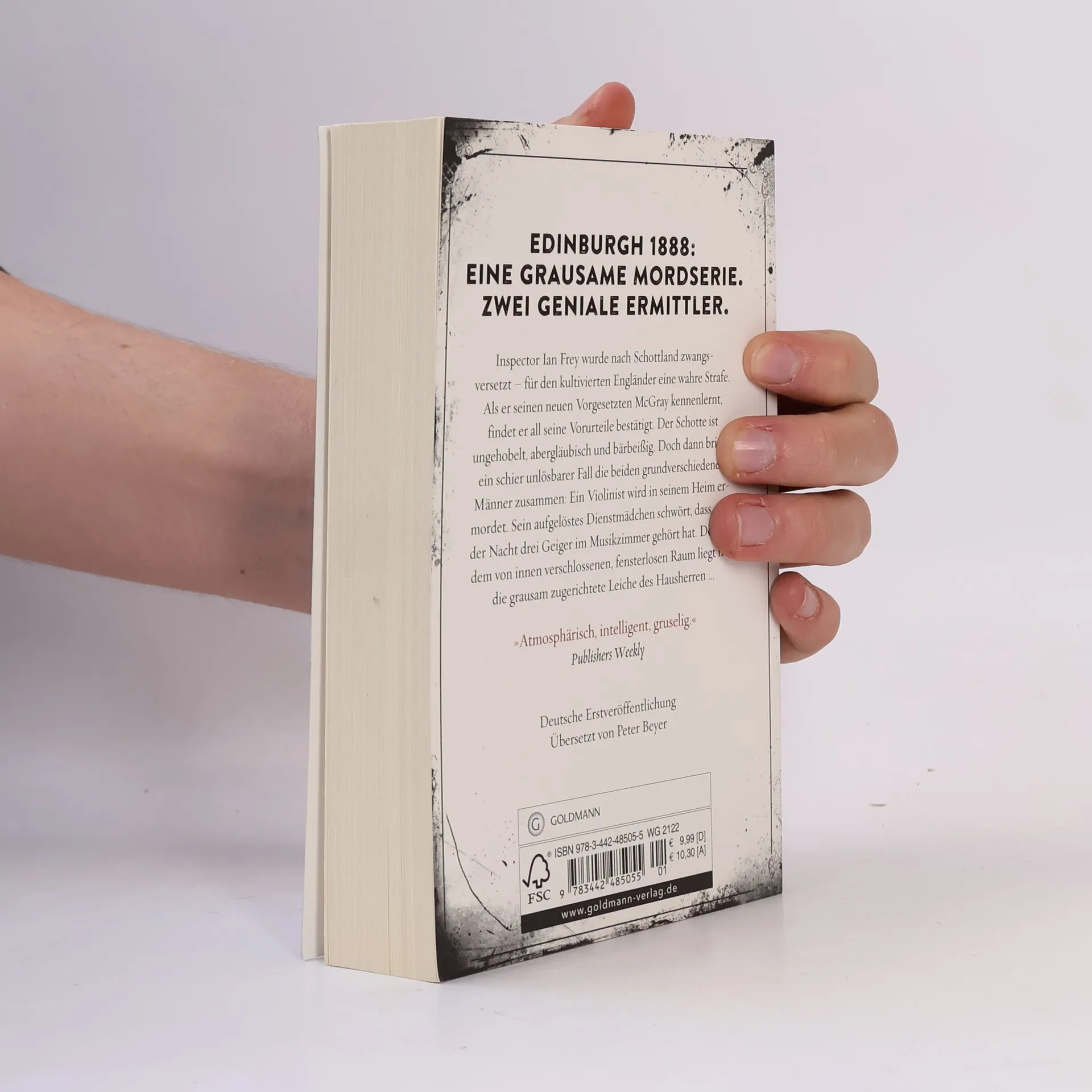 Edinburgh, 1888. Der begnadete Ermittler Ian Frey wird von London nach Schottland zwangsversetzt. Für den kultivierten Engländer eine wahre Strafe. Als er seinen neuen Vorgesetzten, Inspector McGray, kennenlernt, findet er all seine Vorurteile bestätigt: Ungehobelt, abergläubisch und bärbeißig, hat der Schotte seinen ganz eigenen Ehrenkodex. Doch dann bringt ein schier unlösbarer Fall die beiden grundverschiedenen Männer zusammen: Ein Violinist wird grausam in seinem Heim ermordet. Sein aufgelöstes Dienstmädchen schwört, dass es in der Nacht drei Geiger im Musikzimmer gehört hat. Doch in dem von innen verschlossenen, fensterlosen Raum liegt nur die Leiche des Hausherren ...
