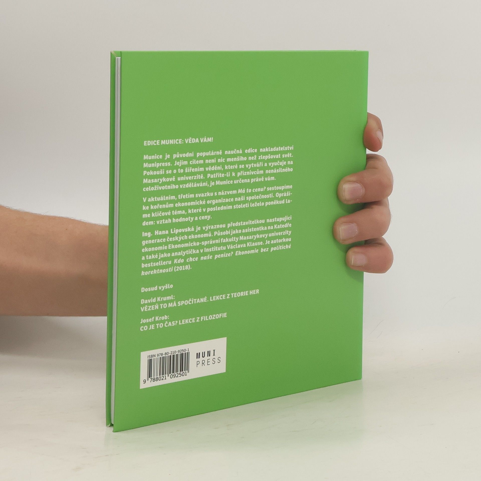 Kniha pojednává o vztahu hodnoty a ceny a popisuje jejich vliv na chování člověka v rámci ekonomiky. Kniha patří do edice "Munice", což je populárně naučná edice nakladatelství Munipress