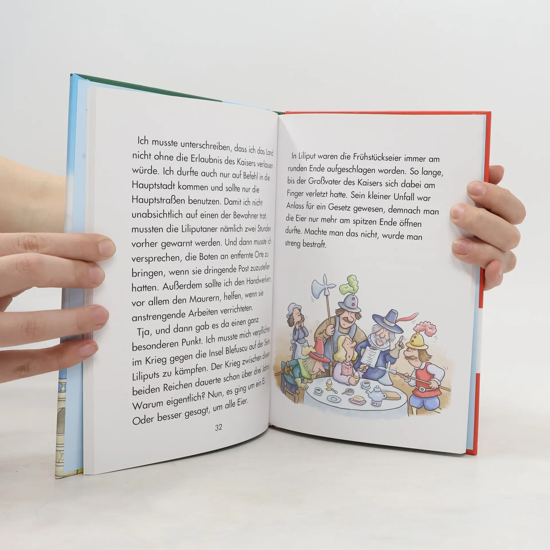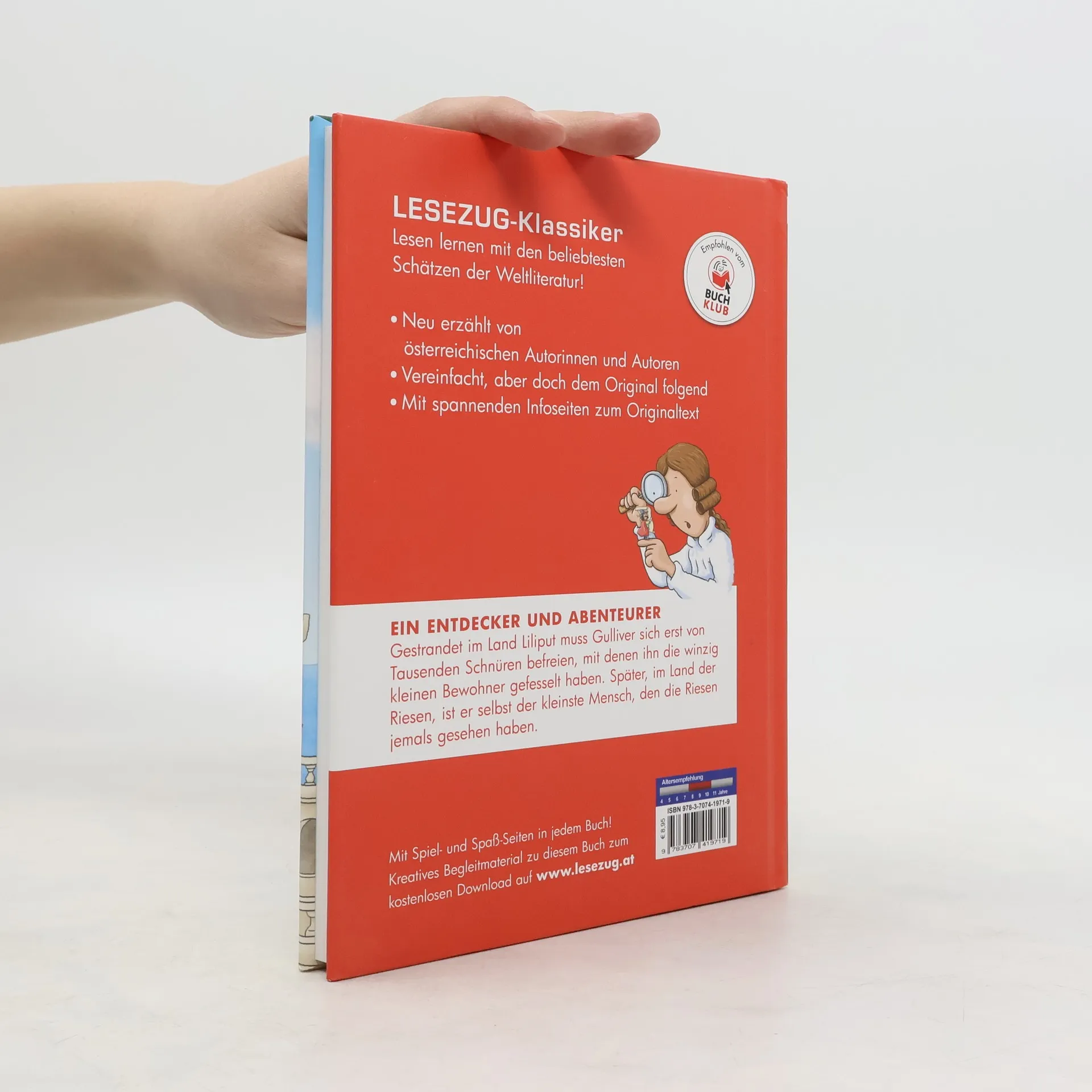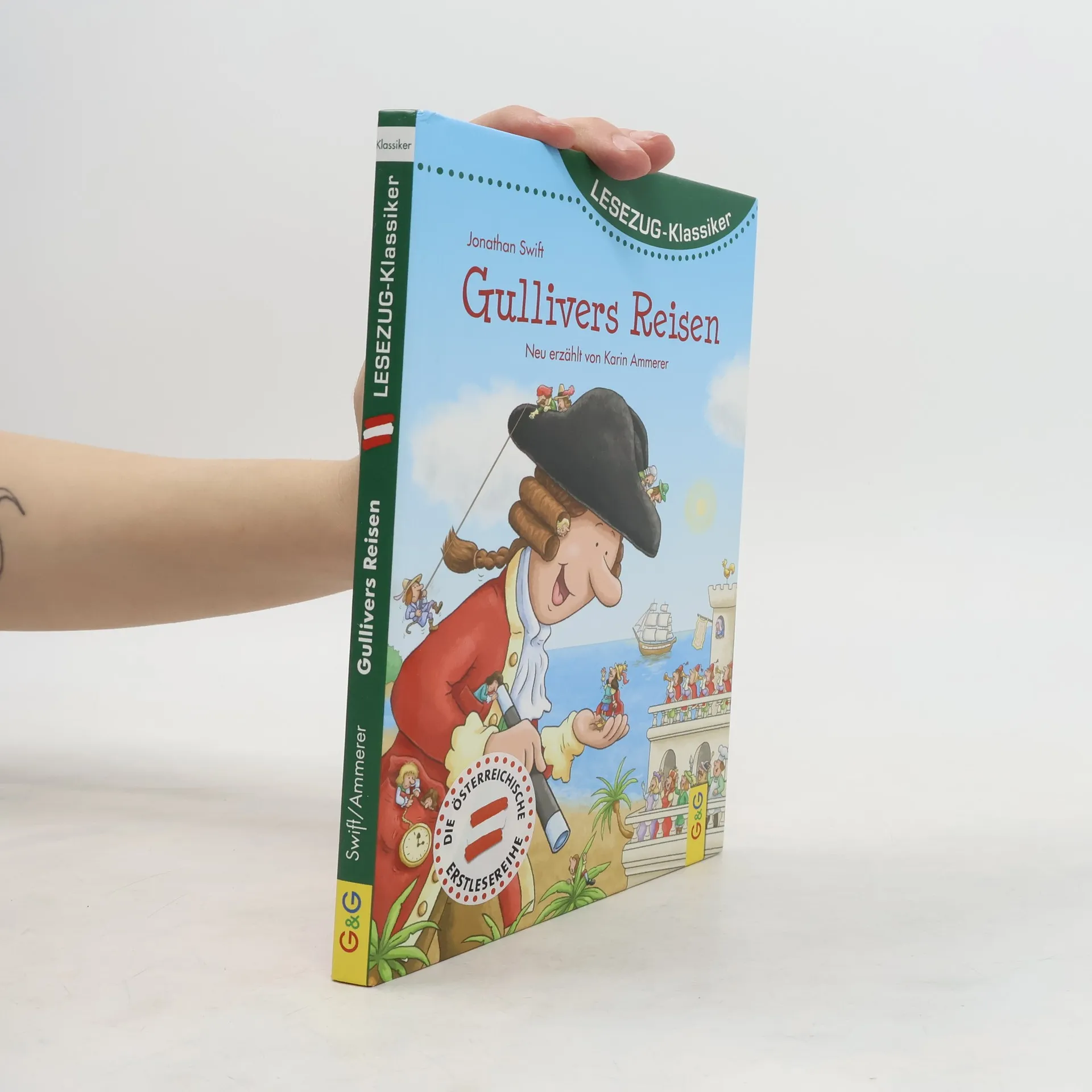 Ein großer Entdecker und verwegener Abenteurer, das ist Gulliver. Gestrandet im Land Liliput muss er sich erst von Tausenden Schnüren befreien, mit denen ihn die winzig kleinen Bewohner gefesselt haben. Später, im Land der Riesen, ist er selbst der kleinste Mensch, den die Riesen jemals gesehen haben. Gullivers unglaubliche Reisen hat Karin Ammerer spannend nacherzählt. Mit pfiffigen Bildern von Matthias Kahl. Österreichische Sprache Kapitelunterteilung Infoseiten zum Originaltext Spiel- und Spaß-Seiten