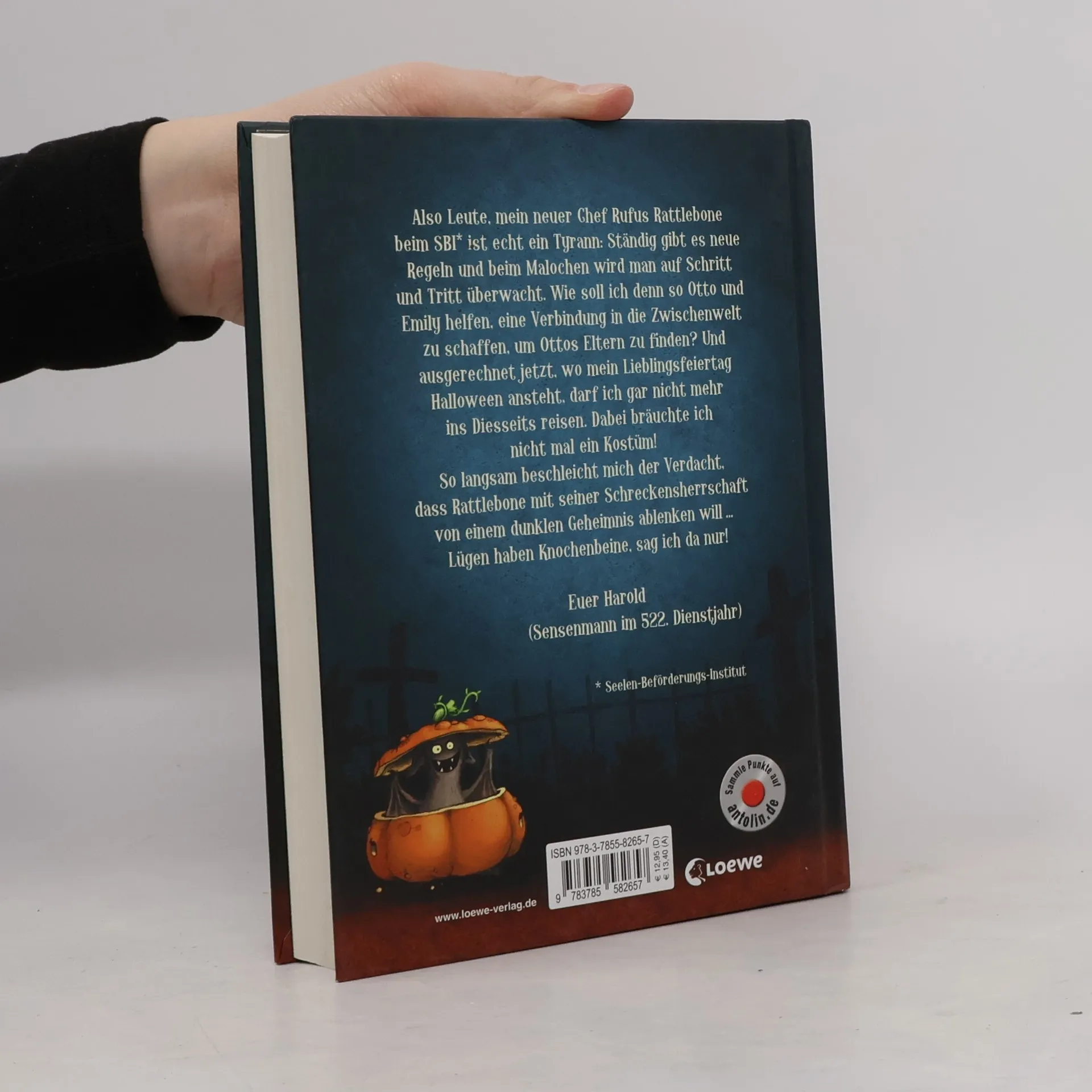 Es ist Halloween im Radieschenweg! Doch anstatt sich mit seinem echten Skelett-Freund unter die Verkleideten zu mischen, hockt Otto allein zu Hause. Harold macht sich rar, denn sein neuer Boss Rufus Rattlebone hat knallharte Regeln aufgestellt: Diesseitsbesuche außerhalb der Dienstzeit sind ausdrücklich verboten! Gut, dass sich wenigstens der frisch aus dem Jenseits zurückgekehrte Onkel Archibald Zeit nimmt, mit Otto und Emily die Schneekugel in Gang zu setzen und eine Verbindung zu seinen Eltern in der Zwischenwelt aufzubauen. Sie erfahren, dass Ottos Eltern von einem Sensenmann mit Holzbein dorthin verschleppt wurden. Als Otto eines Nachts ein gruseliger Schatten mit Holzbein auflauert und Harolds Boss ein ebensolches zu haben scheint, häufen sich die Zufälle ... Der fünfte Band der kultigen Kinderbuch-Reihe um den Jungen Otto, seine Freundin Emily und Sensenmann Harold – ein spannendes, lustiges und Geist-reiches Abenteuer mit witzigen Bildern für kleine und große Leser ab 10 Jahren. Mehr Infos rund um Scary Harry unter: www.scaryharry.de