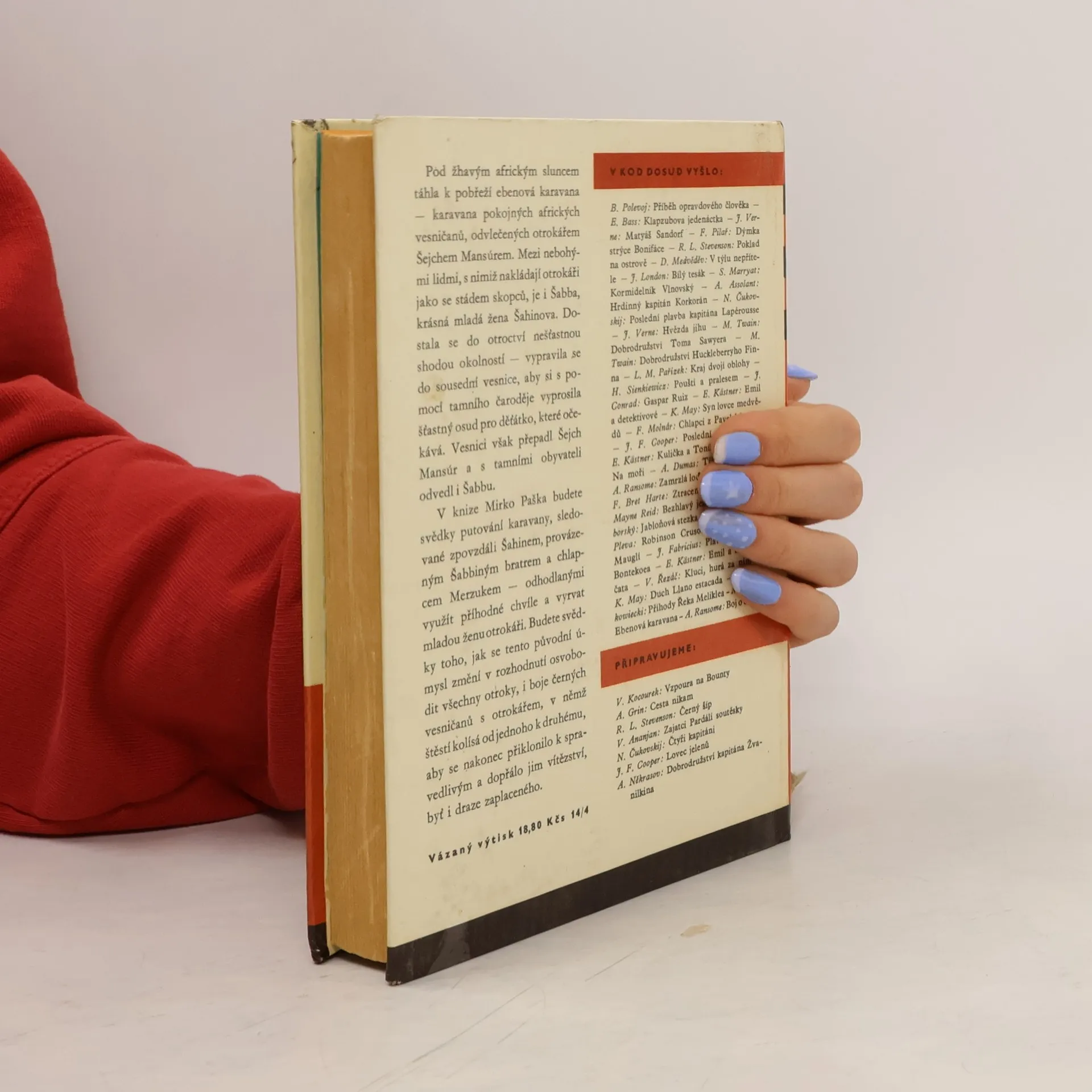 Osud černých obyvatel dvou somálských vesnic, které bílý otrokář zajme a chce prodat do otroctví, jejich beznadějný pochod pouští, ztroskotání lodi, vzpouru a osvobození napínavě líčí dobrodružný román, určený mládeži.