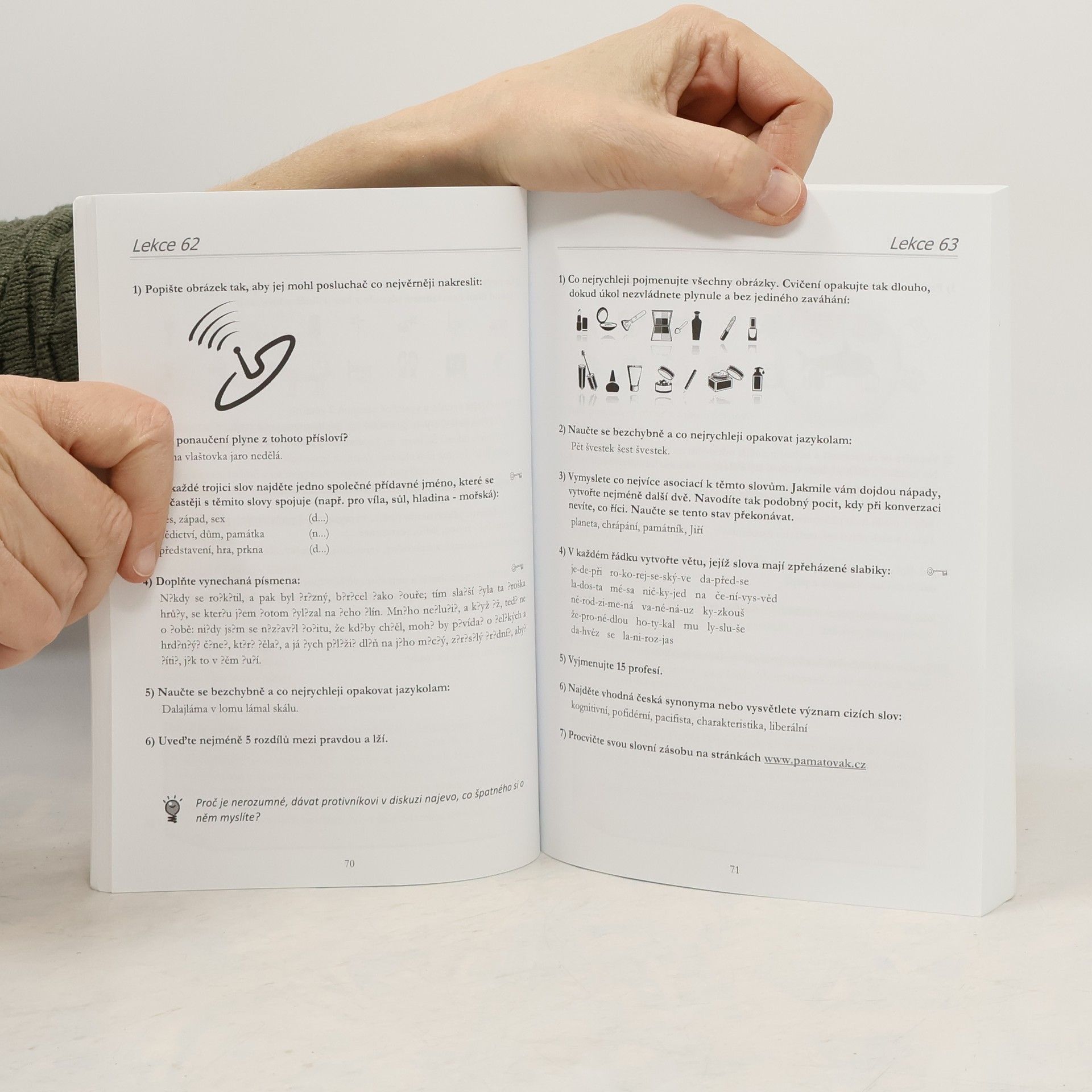 Nové vydání úspěšné knihy Mluvte jako mluvčí přináší Vám, čtenářům, desítky nových druhů originálních cvičení zaměřených na zlepšení mluveného projevu. Pravidelným tréninkem s knihou brzy rozšíříte svou aktivní slovní zásobu v rodném jazyce a zdokonalíte své vyjadřovací i artikulační schopnosti. Naučíte se rychleji vymýšlet konverzační témata v každodenních rozhovorech a debatách nebo lépe obhajovat svůj názor při sporných diskuzích. Pomocí snadno zapamatovatelných a lehce aplikovatelných rétorických rad navíc zjistíte: jak působit obratněji ve společnosti jak získávat pozornost opačného pohlaví jak přesvědčovat druhé a mnoho dalšího. Praktická část knihy je rozdělena do 200 lekcí, z nichž každá nabízí 30 minut intenzivního řečnického tréninku za pomoci 5-7 zajímavých cvičení. Pro své praktické zaměření bývá kniha doporučována jako doplňková literatura v seminářích rétoriky nebo využívána v medicíně jako terapeutická pomůcka při odstraňování řečových vad (ať už vrozených nebo získaných následkem mozkových příhod a jiných vážných onemocnění). Hlavní uplatnění však najde u každého člověka, který občas cítí, že jeho mluvený projev není tak kvalitní, jak by si přál, jeho řeč není tak plynulá a srozumitelná, jak by mohla být či jeho vyjádření vždy nebývají dostatečně výstižná a všem jasná.