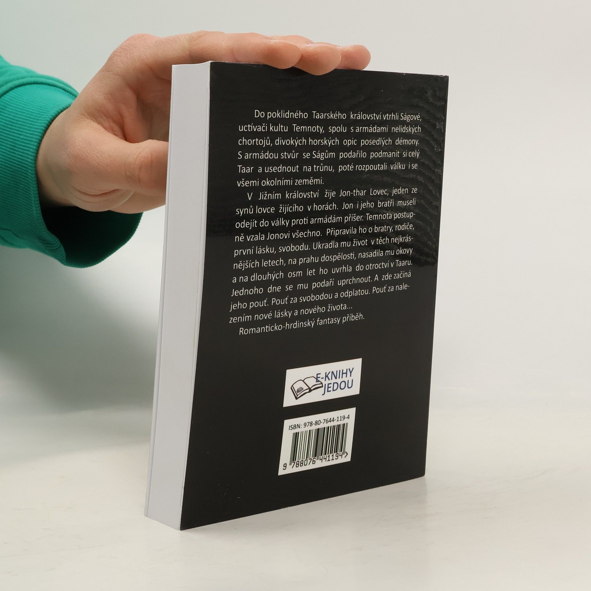 Do poklidného Taarského království vtrhli Ságové, uctívači kultu Temnoty, spolu s armádami nelidských chortojů, divokých horských opic posedlých démony. S armádou stvůr se Ságům podařilo podmanit si celý Taar a usednout na trůnu, poté rozpoutali válku i se všemi okolními zeměmi. V Jižním království žije Jon-thar Lovec, jeden ze synů lovce žijícího v horách. Jon i jeho bratři museli odejít do války proti armádám příšer. Temnota postupně vzala Jonovi všechno. Připravila ho o bratry, rodiče, první lásku, svobodu. Ukradla mu život v těch nejkrásnějších letech, na prahu dospělosti, nasadila mu okovy a na dlouhých osm let ho uvrhla do otroctví v Taaru. Jednoho dne se mu podaří uprchnout. A zde začíná jeho pouť. Pouť za svobodou a odplatou. Pouť za nalezením nové lásky a nového života... Romanticko-hrdinský fantasy příběh.