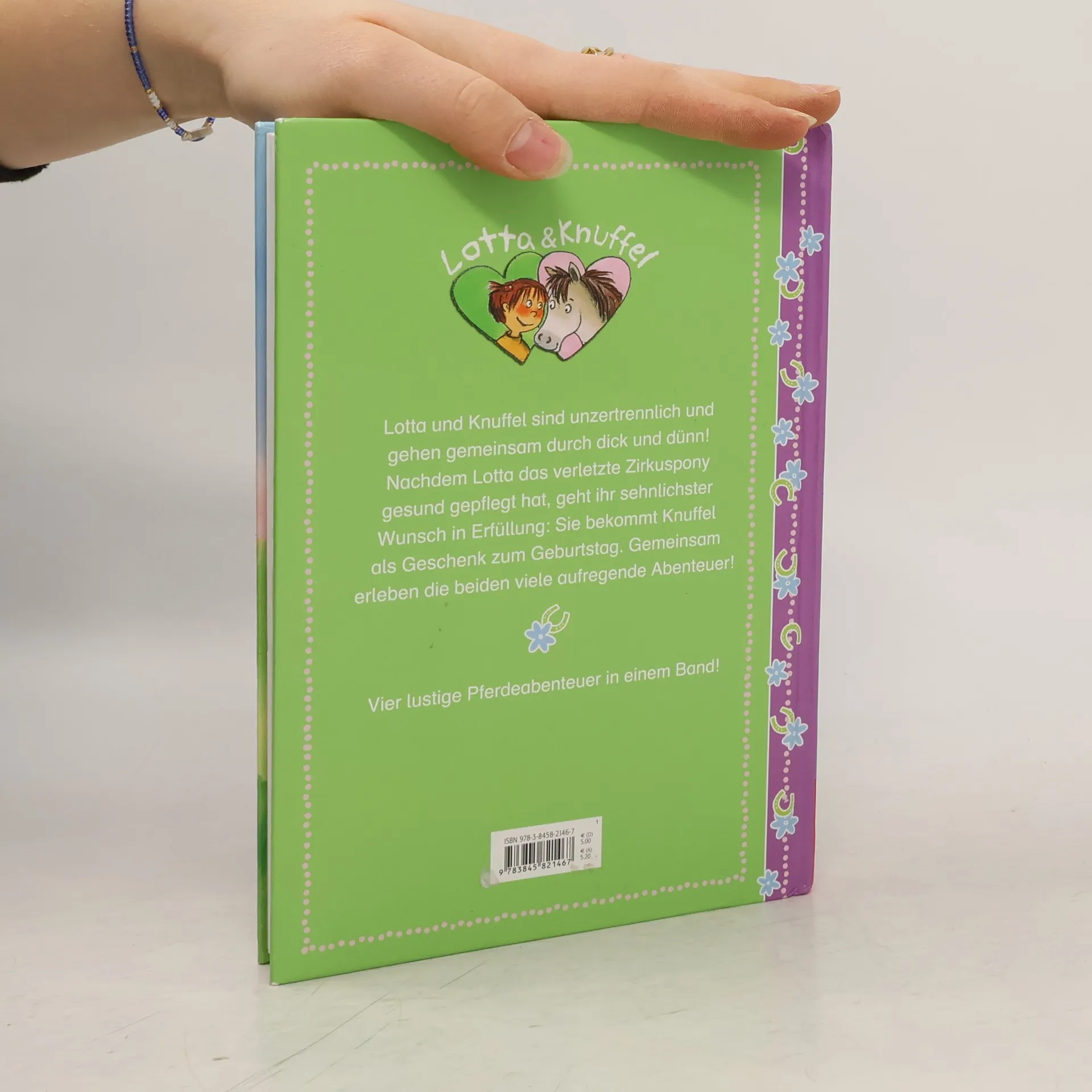Lotta und Knuffel sind unzertrennlich und gehen gemeinsam durch dick und dünn! Nachdem Lotta das verletzte Zirkuspony gesund gepflegt hat, geht ihr sehnlichster Wunsch in Erfüllung: Sie bekommt Knuffel als Geschenk zum Geburtstag! Und gemeinsam erleben die beiden viele aufregende Abenteuer! 4 lustige Pferdeabenteuer in einem Band!