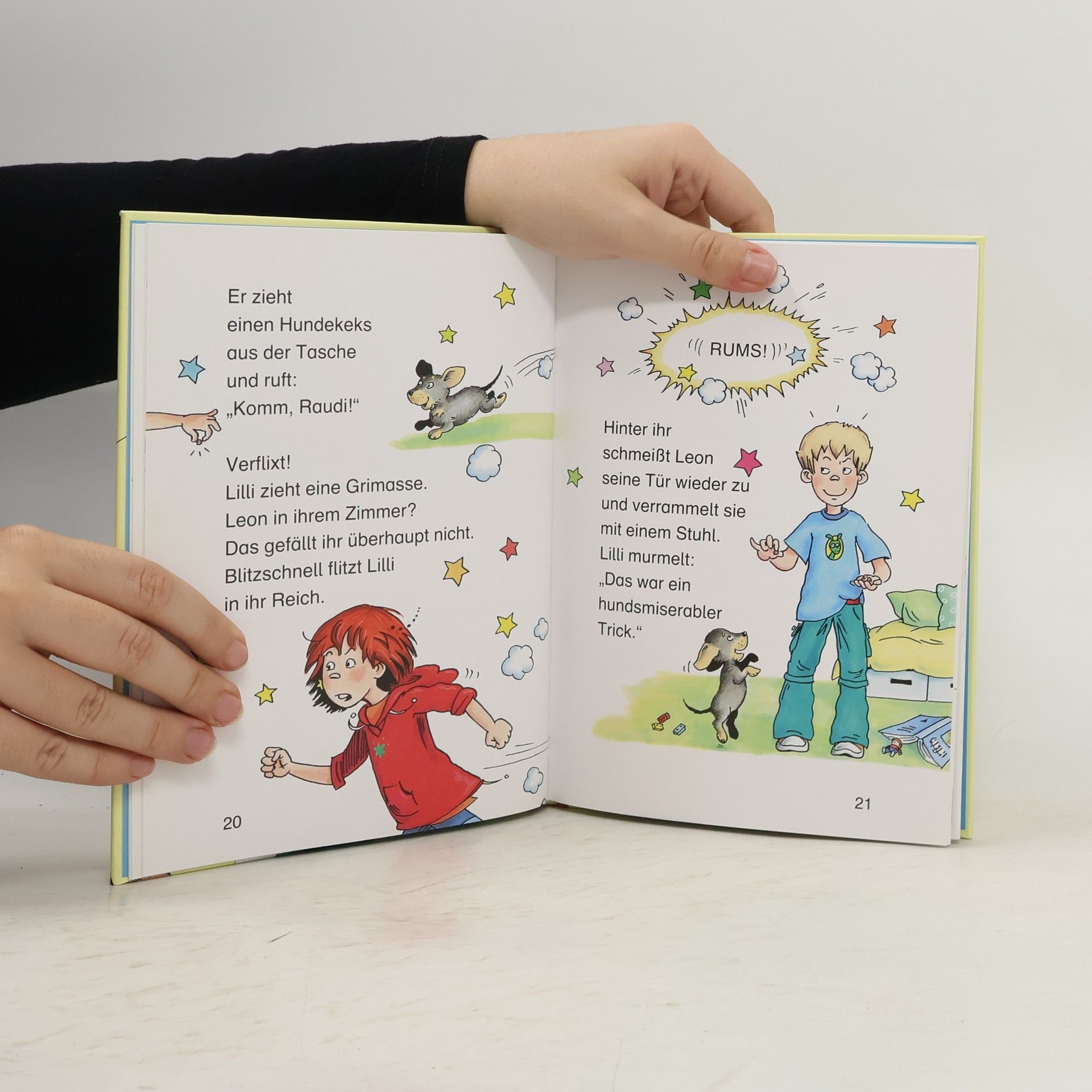 Hexe Lilli und ihr kleiner Bruder Leon dürfen auf Raudi, den süßesten Rauhaardackel der Welt, aufpassen. Doch Leon will ihn ganz für sich allein. Nicht einmal Lillis Tricks helfen da weiter. Ein eigenes Haustier muss her! Zum Glück hält Lillis Hexenbuch den richtigen Spruch bereit, aber der Wunschzauber hat seine Tücken …
