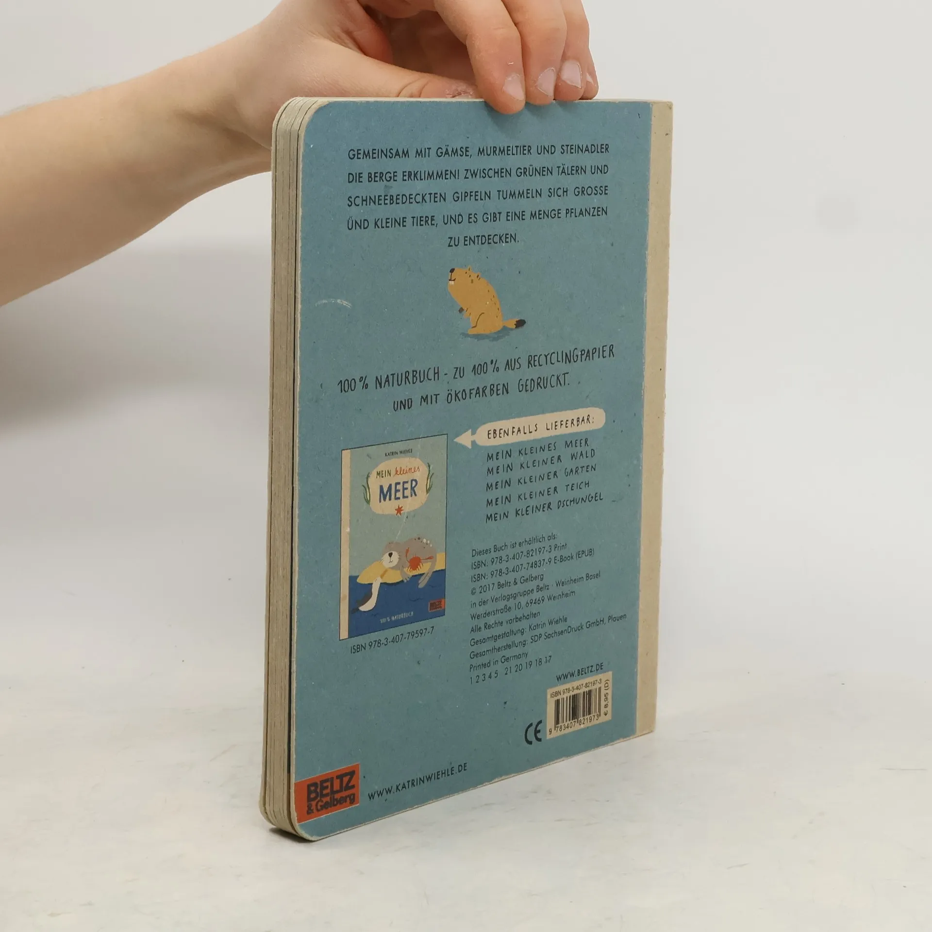 Hoch oben in den Bergen tummeln sich Gämse, Murmeltier und Steinadler und zeigen, wie es auf einer Alm aussieht, welche Tiere besonders gut klettern können und wer sogar im Schnee auf einem Gletscher lebt. Pointierte, klare Bilder und einfache Texte wecken erstes Interesse an Natur und Tieren – auch schon bei den Allerkleinsten. Im Bewusstsein für Umweltschutz und Nachhaltigkeit, mit Ökofarben auf Recyclingpapier gedruckt: das ist unser 100% Naturbuch.