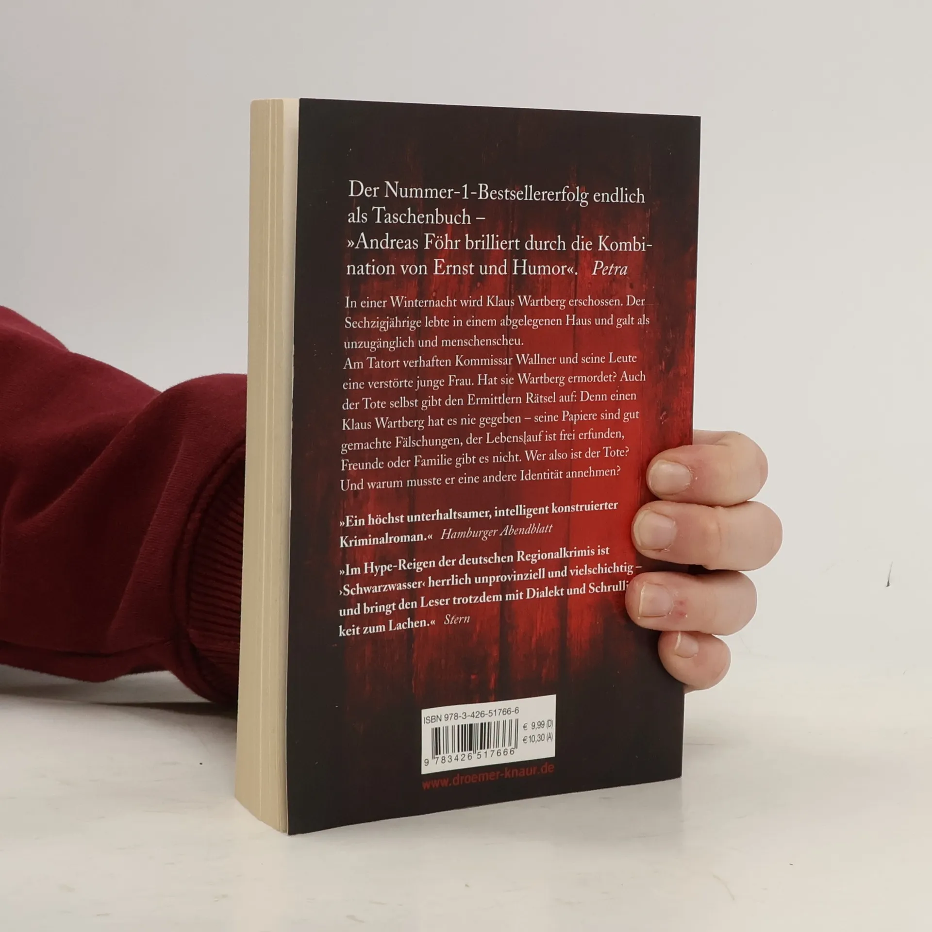 Ein Toter, der gar nicht gelebt hat - Wallner und Kreuthner ermitteln in ihrem 7. Fall! Spiegel-Bestsellerautor Andreas Föhr präsentiert mit „ Schwarzwasser “ den neuesten spannenden Regionalkrimi aus seiner beliebten Reihe „Wallner & Kreuthner Krimis“. Kommissar Clemens Wallner und Polizeiobermeister Leonhardt „Leichen-Leo“ Kreuthner müssen am idyllischen Tegernsee den Mord an einem Mann aufklären, der offiziell gar nicht existiert. Seine Papiere sind gefälscht, seine Identität ein Rätsel. Eine verstörte junge Frau mit der Tatwaffe in der Hand, ein Opfer ohne Vergangenheit und jede Menge Fragen - das erwartet die Ermittler in diesem komplexen Fall. Mit viel Witz, Spannung und bayerischem Lokalkolorit führt Andreas Föhr die Leser auf eine Spurensuche jenseits der Komfortzone. "Im Hype-Reigen der deutschen Regional-Krimis ist 'Schwarzwasser' herrlich unprovinziell und vielschichtig - und bringt den Leser trotzdem mit Dialekt und Schrulligkeit zum Lachen.„ - Stern “Ausgezeichnete und spannende Unterhaltung - zum Genießen und Mitlachen.„ - Krimi-couch. de Ein muss für alle Fans intelligenter Bayern-Krimis mit Tiefgang und Humor. “ Schwarzwasser „ ist nach “Prinzessinnenmörder„, “Schafkopf„, “Karwoche„, “Schwarze Piste„, “Totensonntag„ und “Wolfsschlucht" der siebte Band der erfolgreichen Krimi-Reihe von Andreas Föhr.
