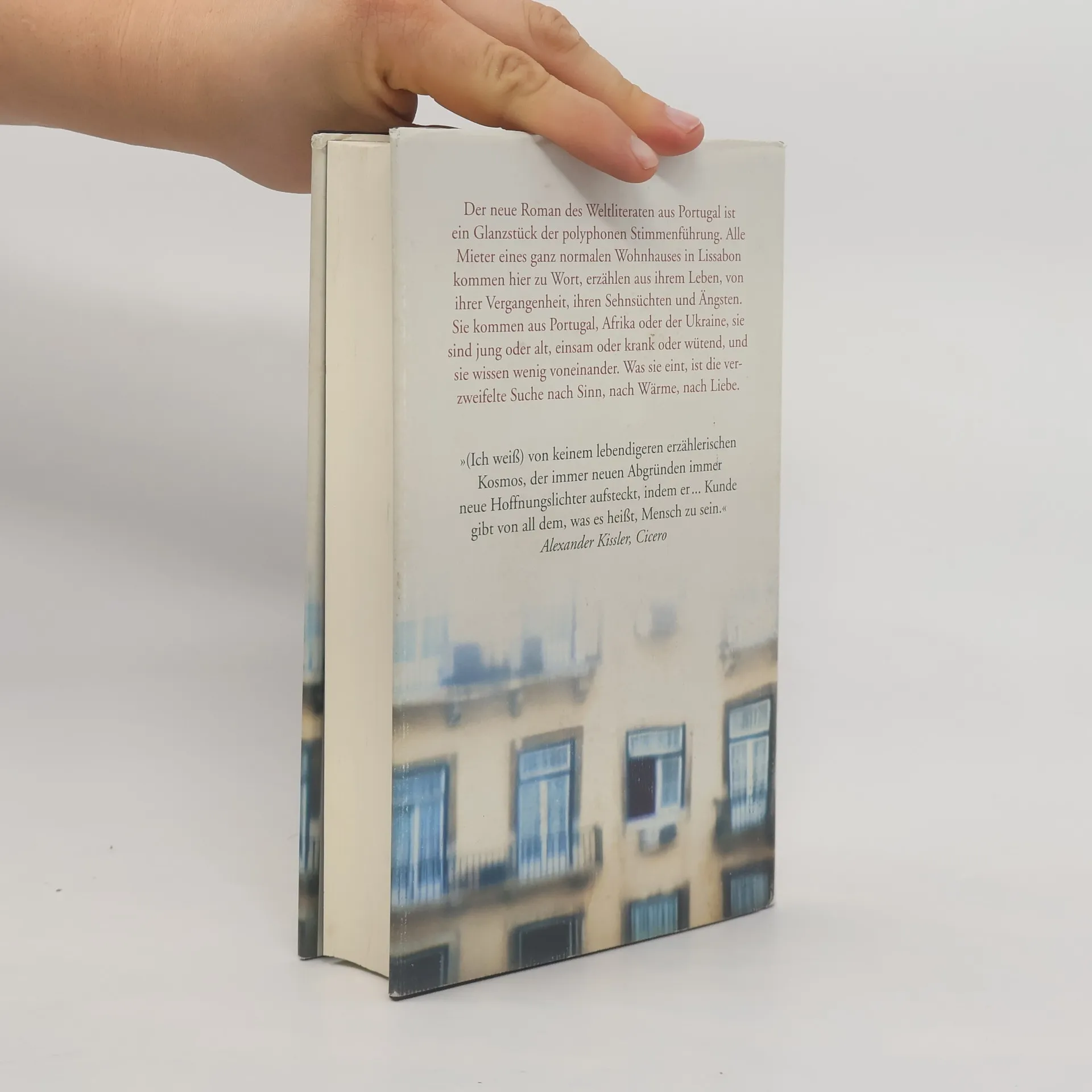 Der neue Roman des Weltliteraten aus Portugal ist ein Glanzstück der polyphonen Stimmenführung. Alle Mieter eines ganz normalen Wohnhauses in Lissabon kommen hier zu Wort, erzählen aus ihrem Leben, von ihrer Vergangenheit, ihren Sehnsüchten und Ängsten. Sie kommen aus Portugal, Afrika oder der Ukraine, sie sind jung oder alt, einsam oder krank oder wütend, und sie wissen wenig voneinander. Was sie eint, ist die verzweifelte Suche nach Sinn, nach Wärme, nach Liebe.