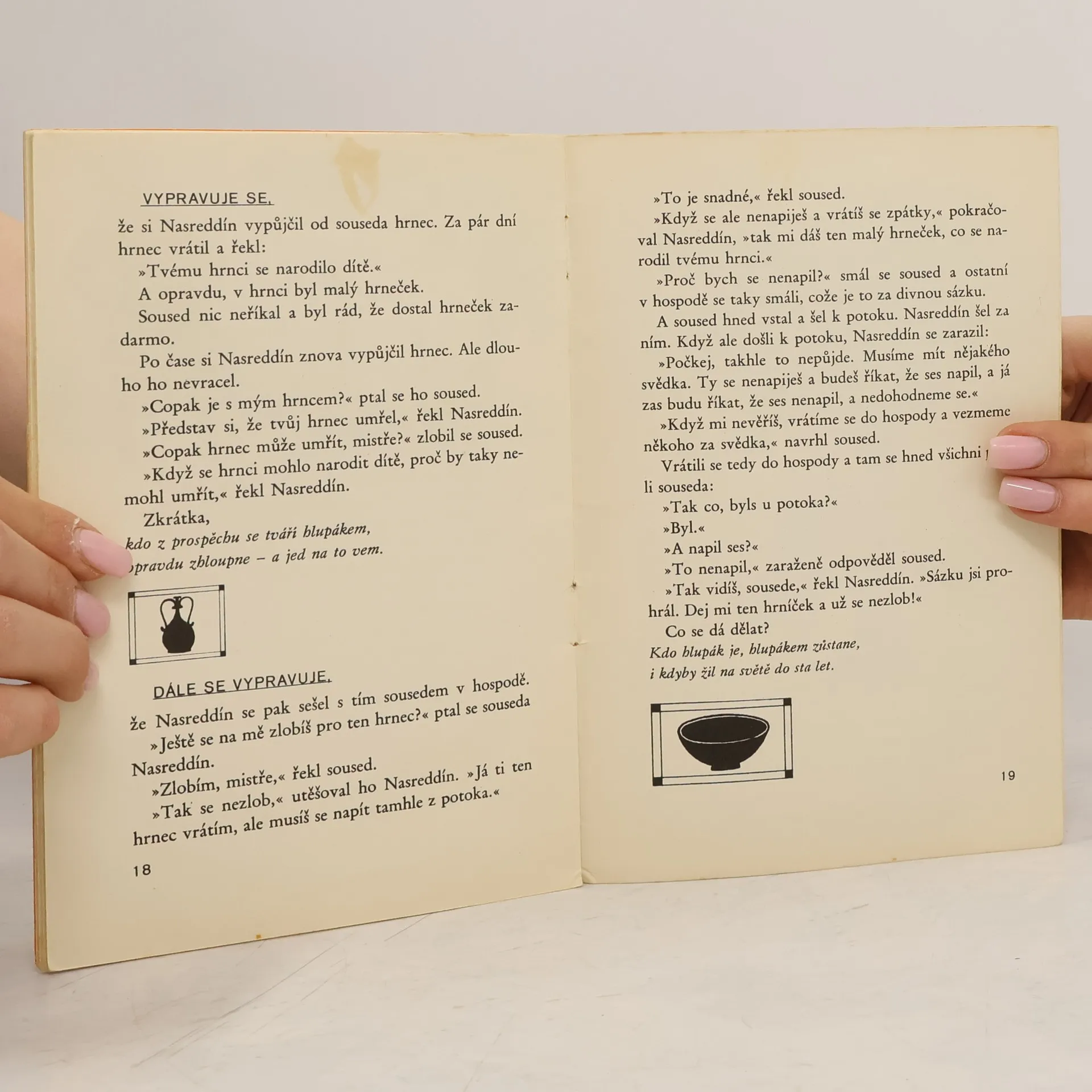 "K těm příběhům, z nichž mnohý užitek mít může každý, i ten dnešní věk, též patří šprýmy mistra Nasreddína, jež čtou se v této knížce povídek." Těmito verši je uváděn soubor krátkých příběhů, v nichž vítězí vtip, pohotovost a především humor a jejichž hrdinou(z části i autorem) je Nasreddín.