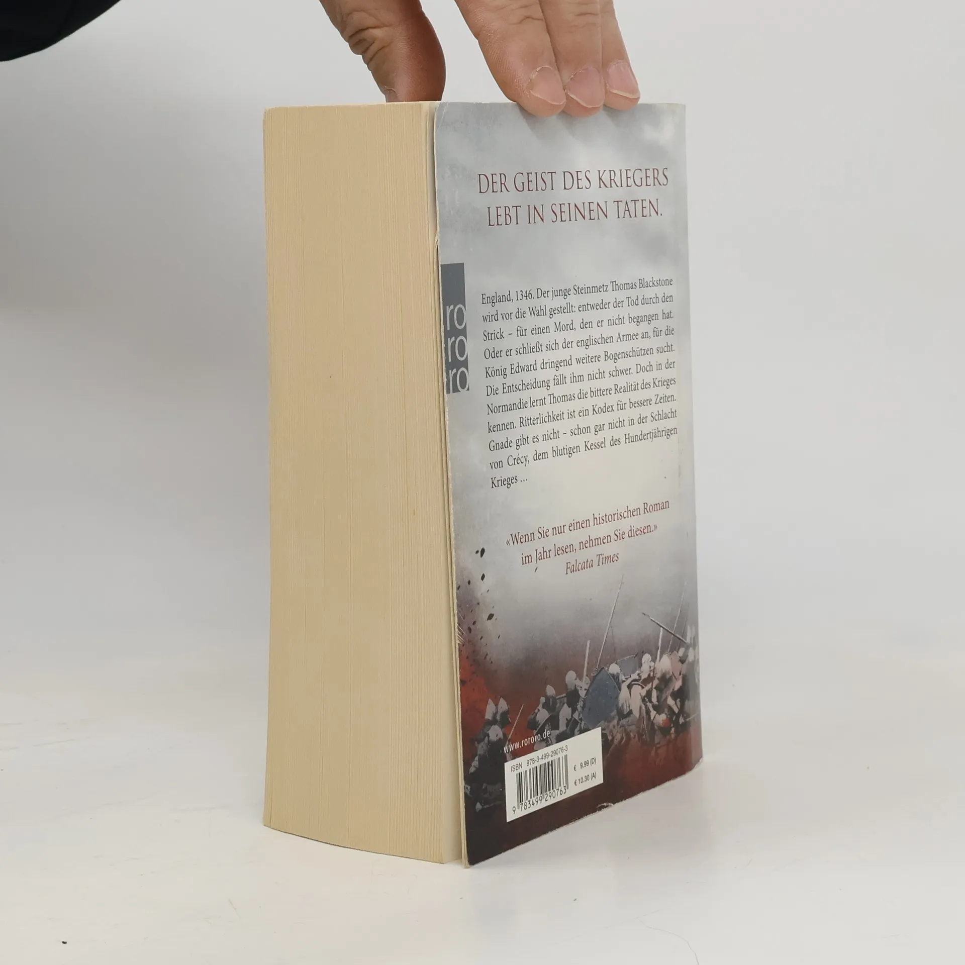 Der Geist des Kriegers lebt in seinen Taten.England, 1346. Der junge Steinmetz Thomas Blackstone wird vor die Wahl gestellt: Entweder der Tod durch den Strick – für einen Mord, den er nicht begangen hat. Oder er schließt sich der englischen Armee an, für die König Edward dringend weitere Bogenschützen sucht. Die Entscheidung fällt ihm nicht schwer. Doch in der Normandie lernt Thomas die bittere Realität des Krieges kennen. Ritterlichkeit ist ein Kodex für bessere Zeiten. Gnade gibt es nicht – schon gar nicht in der Schlacht von Crécy, dem blutigen Kessel des Hundertjährigen Krieges …