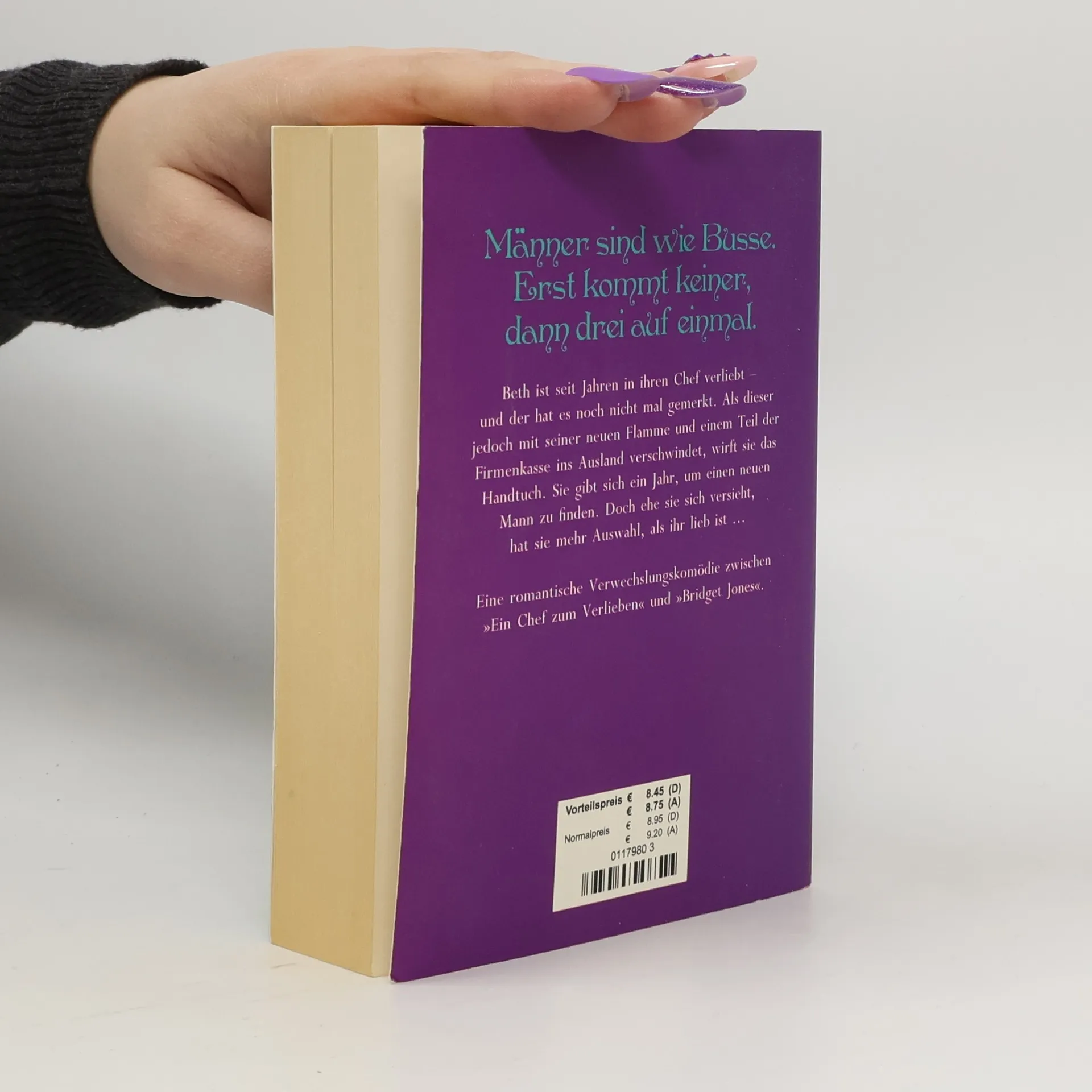 Männer sind wie Busse. Erst kommt keiner, dann drei auf einmal. Beth ist seit Jahren in ihren Chef verliebt – und der hat es noch nicht mal gemerkt. Als dieser mit seiner neuen Flamme und einem Teil der Firmenkasse ins Ausland verschwindet, weiß Beths beste Freundin nur einen Rat: ganz schnell einen neuen Mann für sie zu finden. Einen, der es wert ist. Doch ehe Beth sich versieht, gibt es gleich mehrere. Eine romantische Verwechslungskomödie zwischen „Ein Chef zum Verlieben“ und „Bridget Jones“.
