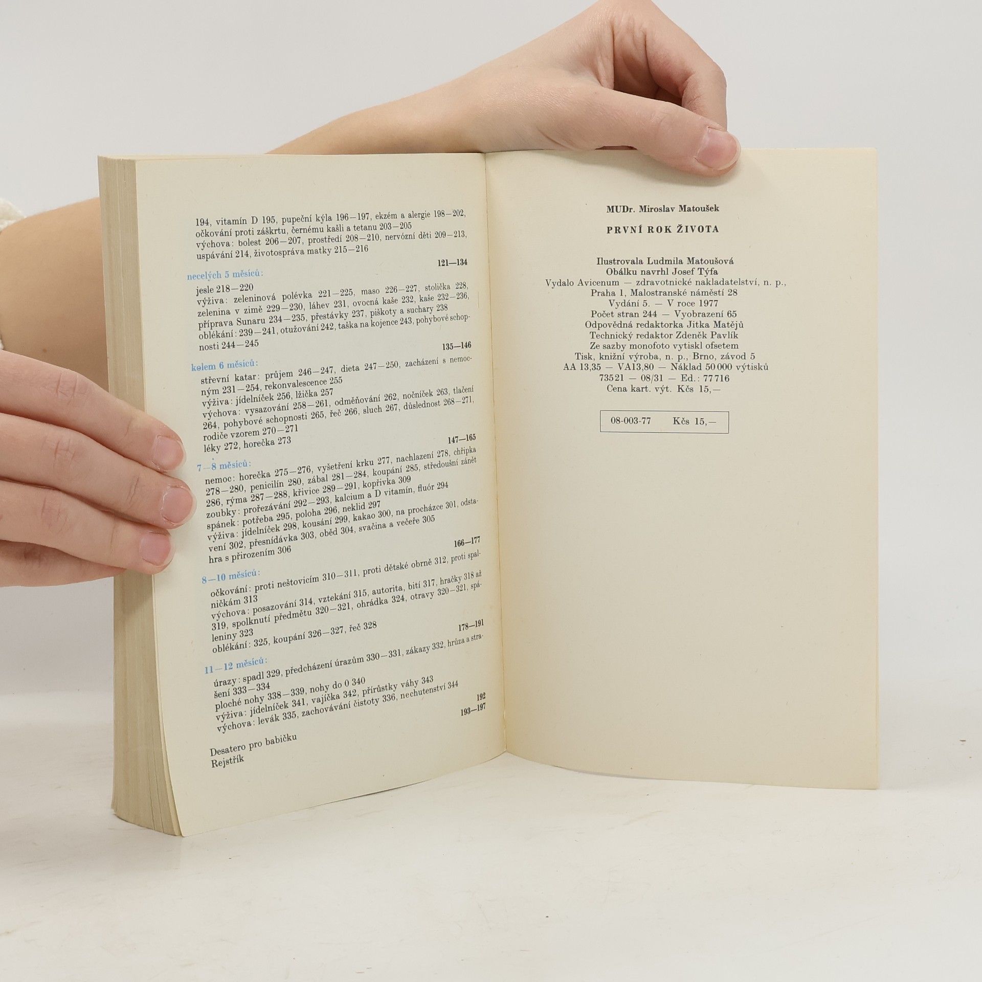 Formou otázek a odpovědí seznamuje zkušený lékař rodiče, jak mají pečovat o kojence, aby dobře prospíval a všestranně se rozvíjel. Kapitoly jsou rozděleny podle jednotlivých vývojových období dítěte od prvních dnů života aždojednoho roku. Výklad doplňují instruktivní fotografie a radypro babičky a dědečky. 344 otázky maminek a odpovědí lékaře plus Desatero pro babičku a Patero rad mamince 5. vydání