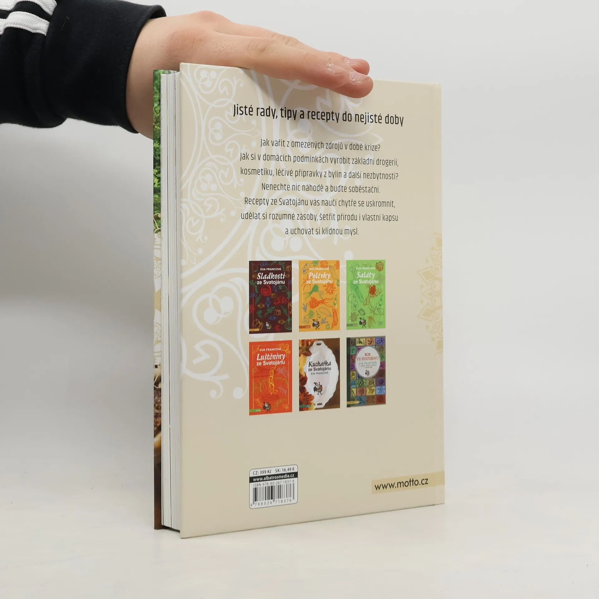 Jisté rady, tipy a recepty do nejisté doby. Jak vařit z omezených zdrojů v době krize? Jak si v domácích podmínkách vyrobit základní drogerii, kosmetiku, léčivé přípravky z bylin a další nezbytnosti? Nenechte nic náhodě a buďte soběstační! Recepty ze Svatojánu vás naučí chytře se uskromnit, udělat si rozumné zásoby, šetřit přírodu i vlastní kapsu a udržet si klidnou mysl.