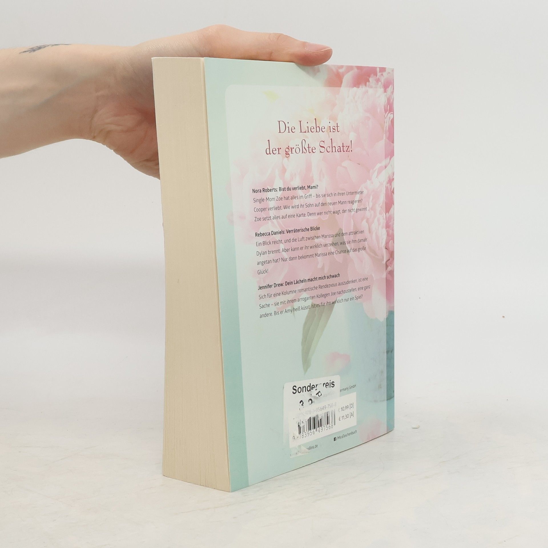 Nora Roberts Bist du verliebt, Mami? Single-Mom Zoe hat alles im Griff - bis sie sich in ihren Untermieter Cooper verliebt. Wie wird ihr Sohn auf den neuen Mann reagieren? Zoe setzt alles auf eine Karte. Denn wer nicht wagt, der nicht gewinnt … Rebecca Daniels Verräterische Blicke Ein Blick reicht, und die Luft zwischen Marissa und dem attraktiven Dylan brennt. Aber kann er ihr wirklich verzeihen, was sie ihm damals angetan hat? Nur dann bekommt Marissa eine Chance auf das große Glück! Jennifer Drew Dein Lächeln macht mich schwach Sich für eine Kolumne romantische Rendezvous‘ auszudenken ist eine Sache - sie mit ihrem arroganten Kollegen Joe nachzustellen eine ganz andere. Bis er Amy heiß küsst. Ist es für ihn wirklich nur ein Spiel?