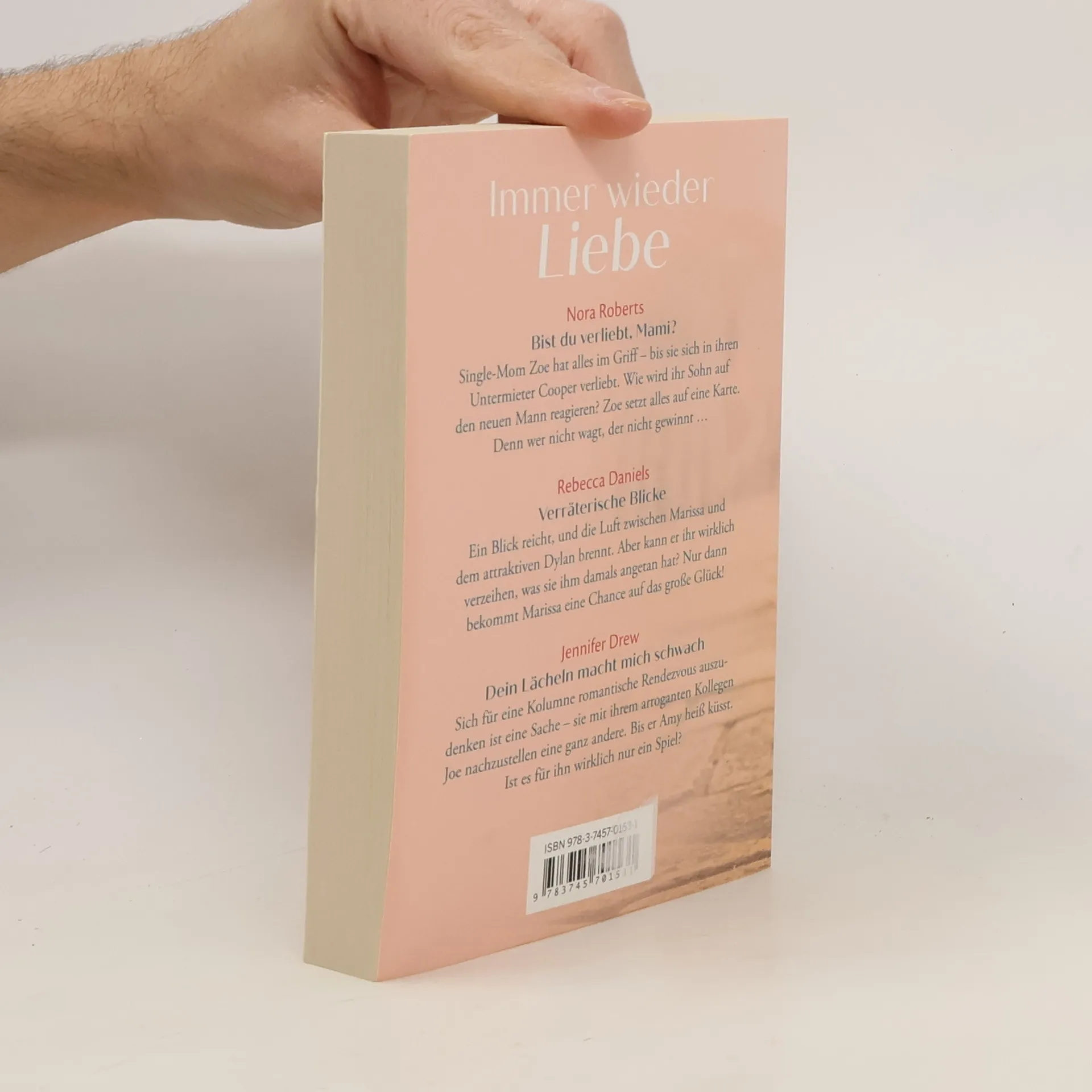 Nora Roberts Bist du verliebt, Mami? Single-Mom Zoe hat alles im Griff - bis sie sich in ihren Untermieter Cooper verliebt. Wie wird ihr Sohn auf den neuen Mann reagieren? Zoe setzt alles auf eine Karte. Denn wer nicht wagt, der nicht gewinnt … Rebecca Daniels Verräterische Blicke Ein Blick reicht, und die Luft zwischen Marissa und dem attraktiven Dylan brennt. Aber kann er ihr wirklich verzeihen, was sie ihm damals angetan hat? Nur dann bekommt Marissa eine Chance auf das große Glück! Jennifer Drew Dein Lächeln macht mich schwach Sich für eine Kolumne romantische Rendezvous‘ auszudenken ist eine Sache - sie mit ihrem arroganten Kollegen Joe nachzustellen eine ganz andere. Bis er Amy heiß küsst. Ist es für ihn wirklich nur ein Spiel?