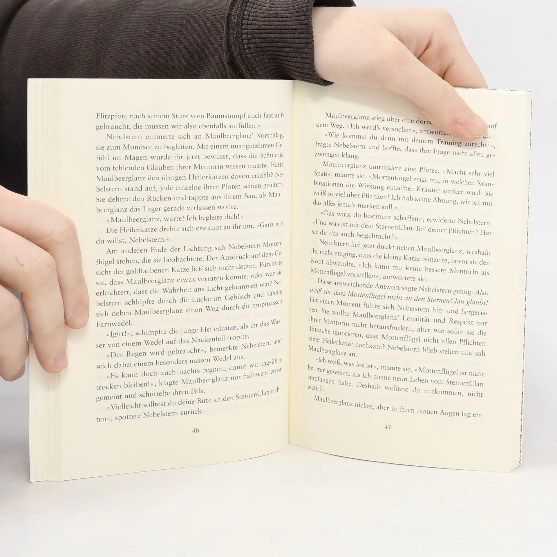 Es ist die Herausforderung ihres Lebens: Nach Leopardensterns Tod wird ihre langjährige Stellvertreterin Nebelfuß die neue Anführerin des FlussClans und erhält den Namen Nebelstern. Doch ihre Führung steht unter keinem guten Omen. Sie entdeckt ein schockierendes Geheimnis des Clans und seiner Heilerin. Durch dieses Wissen ist Nebelsterns Position als Anführerin ist gefährdet, kaum dass sie diese angetreten hat.