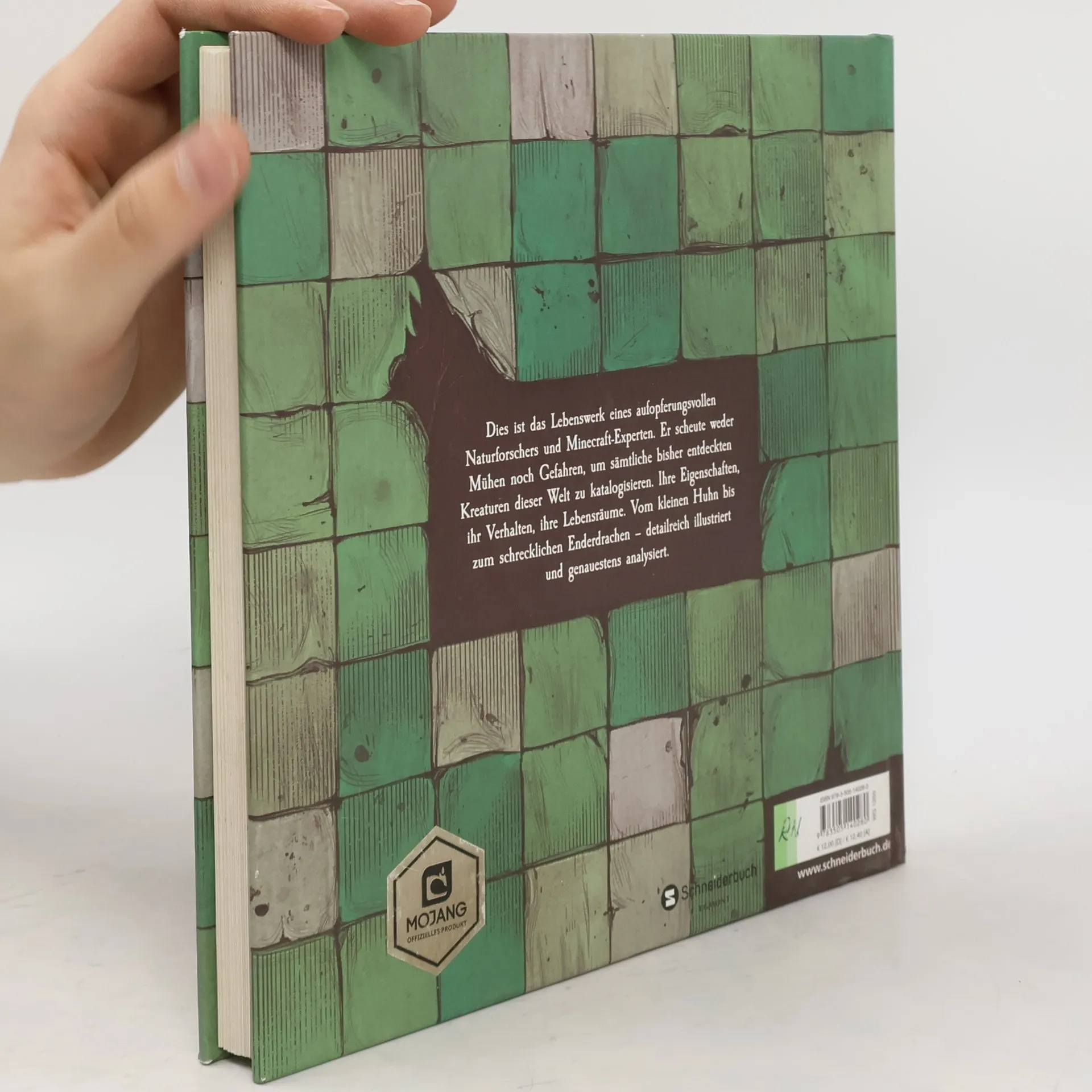 Dies ist das Lebenswerk eines aufopferungsvollen Naturforschers und Minecraft-Experten. Er scheute weder Mühen noch Gefahren, um sämtliche bisher entdeckten Kreaturen dieser Welt zu katalogisieren. Ihre Eigenschaften, ihr Verhalten, ihre Lebensräume. Vom kleinen Huhn bis zum schrecklichen Enderdrachen - detailreich illustriert und genauestens analysiert. Ein absolutes MUSS für jeden Minecraft-Fan!