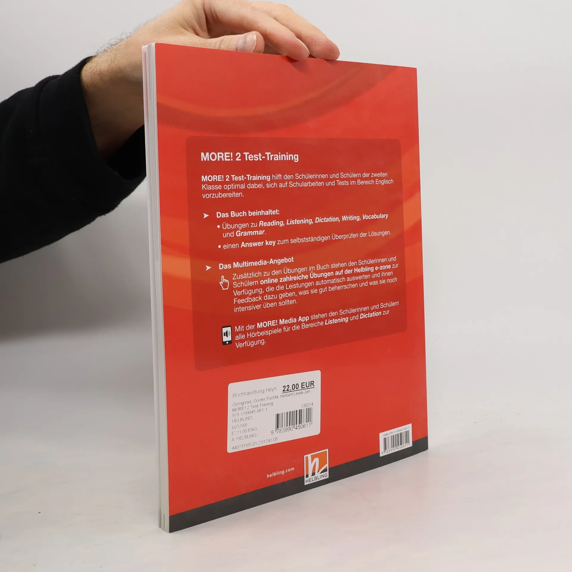 'MORE! 2 Test-Training' hilft den Schülerinnen und Schülern der 6. Schulstufe (2. Klasse) optimal dabei, sich auf Schularbeiten und Tests im Fach Englisch effizient vorzubereiten. Das Buch beinhaltet Übungen zu 'Reading', 'Listening', 'Dictation', 'Writing', 'Vocabulary' und 'Grammar'. Über eine kostenlose App lassen sich die Hörbeispiele für die Bereiche 'Listening' und 'Dictation' herunterladen und nutzen. Im Anhang des Buches finden sich die Lösungen zum selbständigen Überprüfen. Zusätzlich stehen online zahlreiche Übungen zur Verfügung, die über einen Code im Buch zugänglich sind. Hierbei werden die Leistungen der Schülerinnen und Schüler automatisch ausgewertet und sie erhalten Feedback, was sie gut beherrschen und was sie noch intensiver üben sollten.