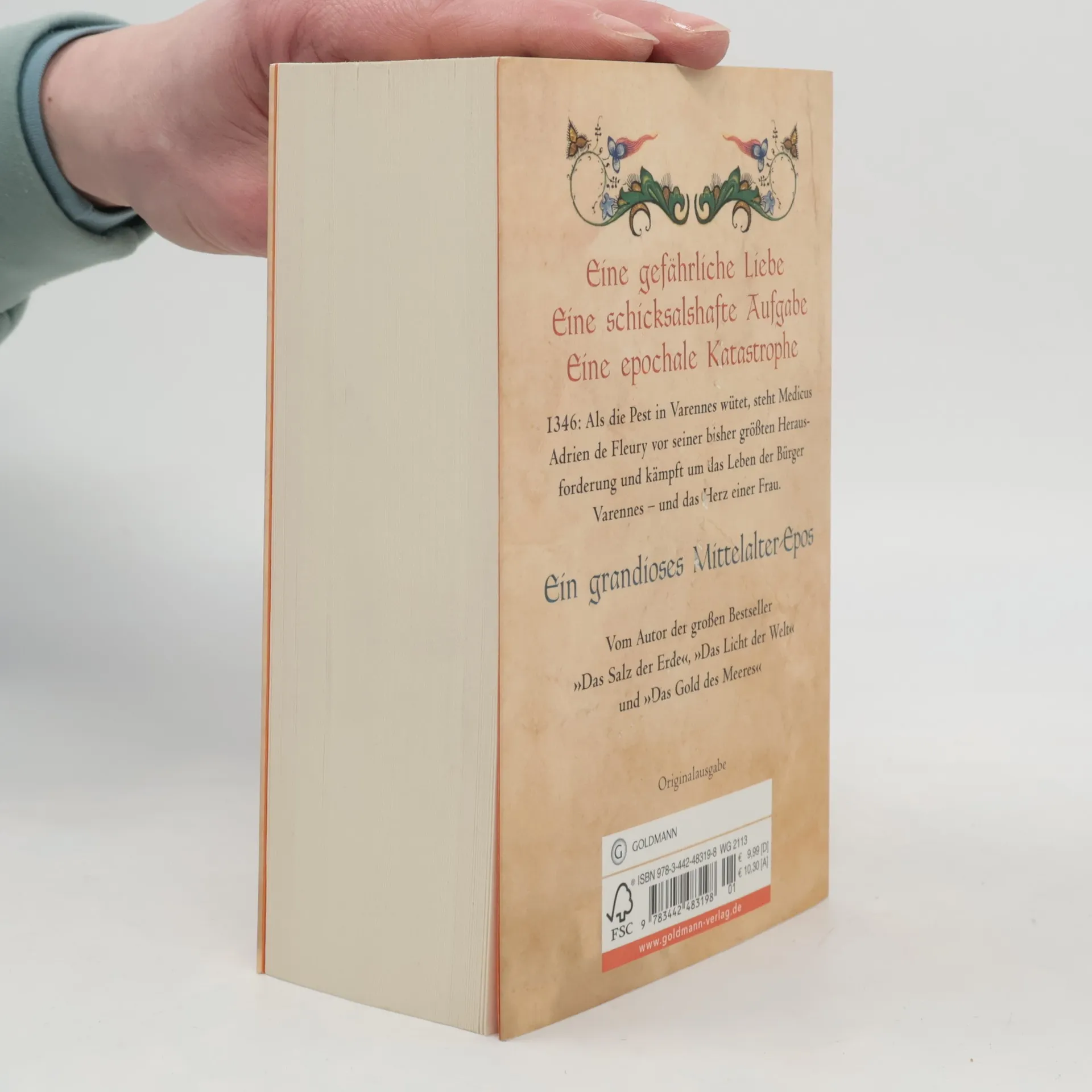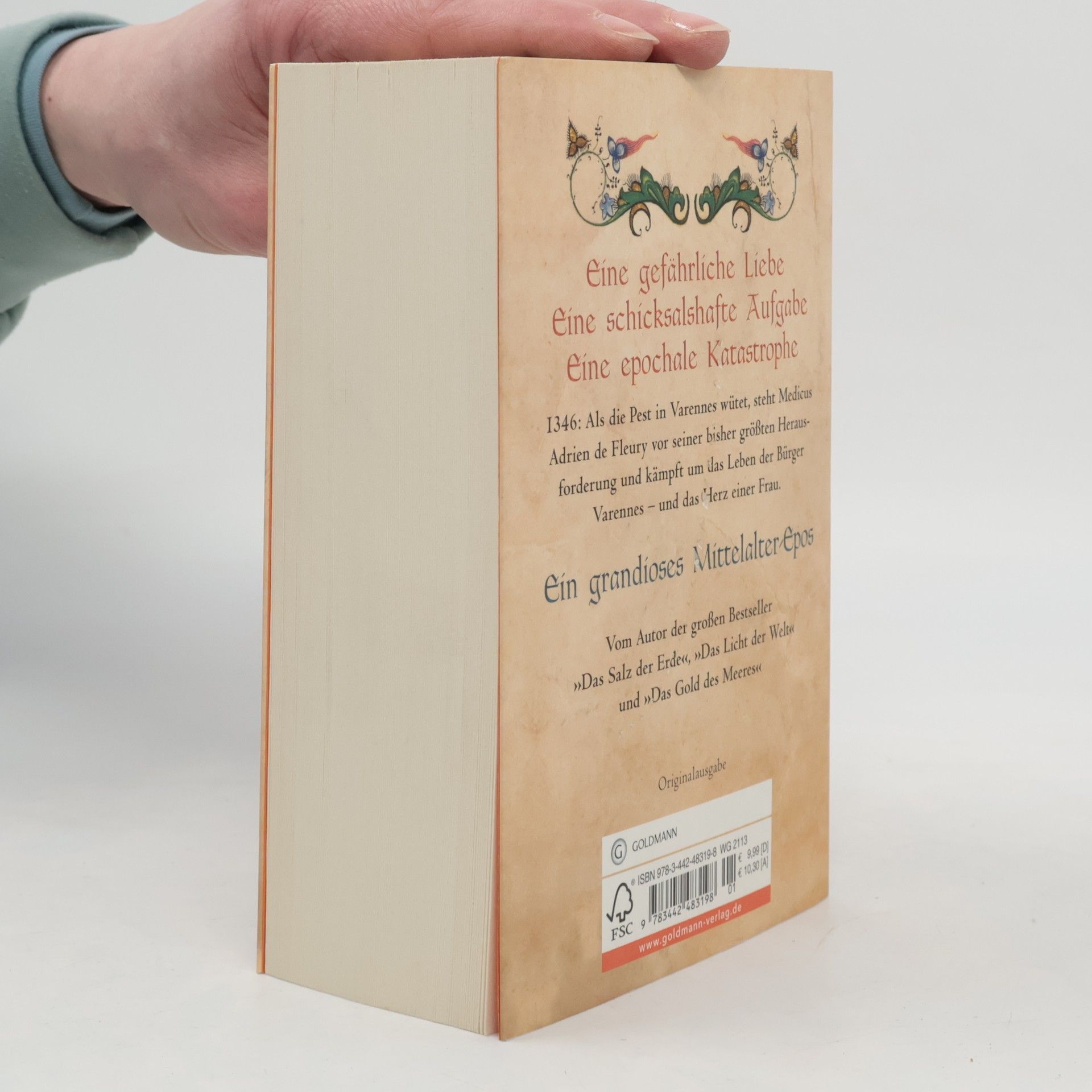 Anno Domini 1346. Der junge Kaufmannssohn Adrien Fleury studiert in Montpellier Medizin und träumt von einer Laufbahn als Arzt. Als er nach Varennes-Saint-Jacques zurückkehrt, erkennt er seine Heimatstadt kaum wieder. Reiche Patrizier regieren Varennes rücksichtslos. Das einfache Volk rebelliert gegen Unterdrückung und niedrige Löhne. Die Juden leiden unter Hass und Ausgrenzung. Als Adrien eine Stelle als Wundarzt antritt, lernt er die jüdische Heilerin Léa kennen. Sie verlieben sich und bringen sich damit in höchste Gefahr. Doch dann wütet der Schwarze Tod in Varennes, und Adriens Fähigkeiten werden auf eine harte Probe gestellt ...