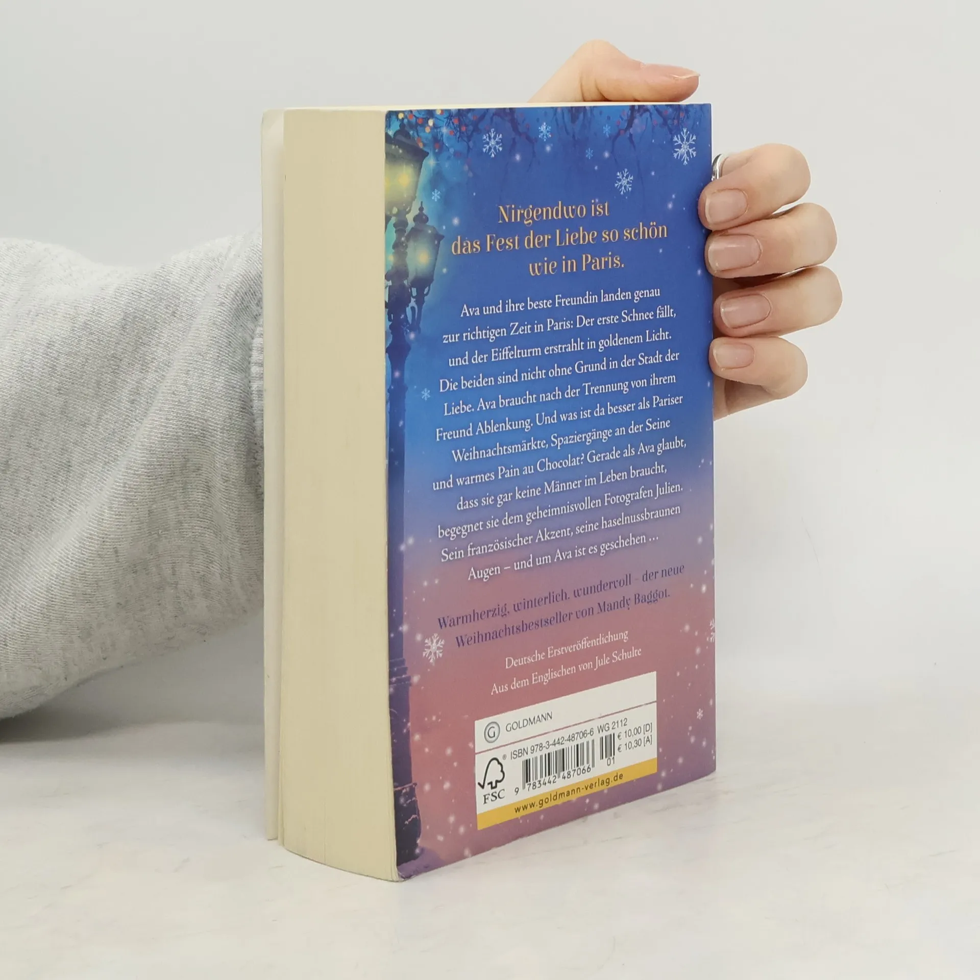 Warmherzig, winterlich, wundervoll. Der neue Weihnachtsbestseller von Mandy Baggot. Ava und ihre beste Freundin landen genau zur richtigen Zeit in Paris: Der erste Schnee fällt, der Eiffelturm erstrahlt in goldenem Licht, und der Duft von Zimt liegt in der Luft. Die beiden Freundinnen sind nicht ohne Grund in der Stadt der Liebe. Ava braucht nach einer hässlichen Trennung Ablenkung. Und was ist da besser als Pariser Weihnachtsmärkte, Spaziergänge an der Seine und warmes Pain au Chocolat? Gerade als Ava glaubt, dass sie gar keine Männer im Leben braucht, begegnet sie dem geheimnisvollen Fotografen Julien. Sein französischer Akzent, seine haselnussbraunen Augen – und um Ava ist es geschehen …