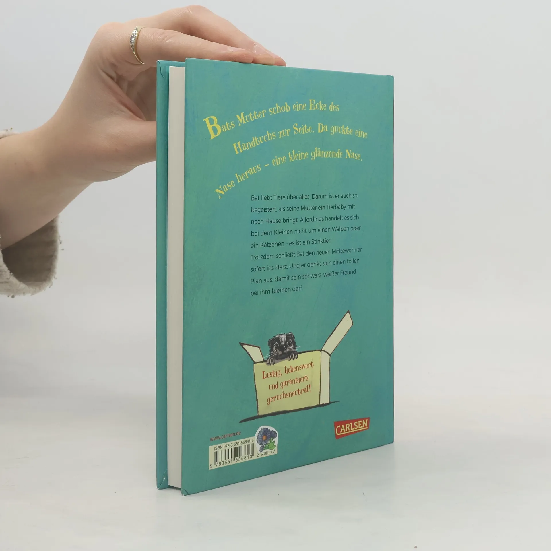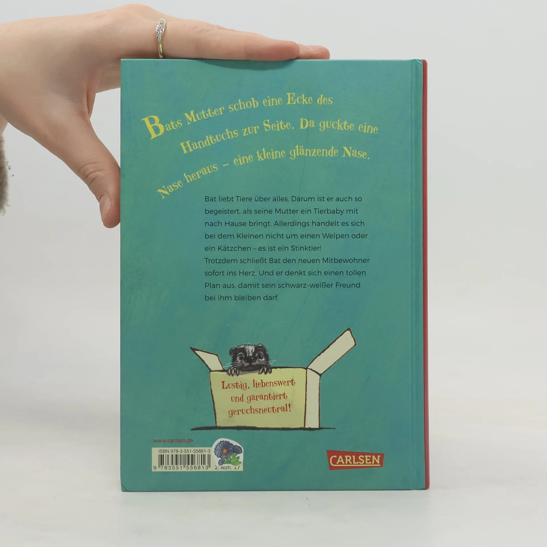 Bat liebt Tiere über alles. Darum ist er auch so begeistert, als seine Mutter ein Tierbaby mit nach Hause bringt. Allerdings handelt es sich bei dem Kleinen nicht um einen Welpen oder ein Kätzchen – es ist ein Stinktier! Trotzdem schließt Bat den neuen Mitbewohner sofort ins Herz. Und er denkt sich einen Plan aus, damit sein schwarz-weißer Freund bei ihm bleiben darf: Wenn ein echter Stinktierexperte erklären würde, dass Bats Zuhause der beste Platz für den Kleinen ist, dann kann seine Mutter nicht Nein sagen. Oder? --- Lustig, liebenswert und garantiert geruchsneutral! ---