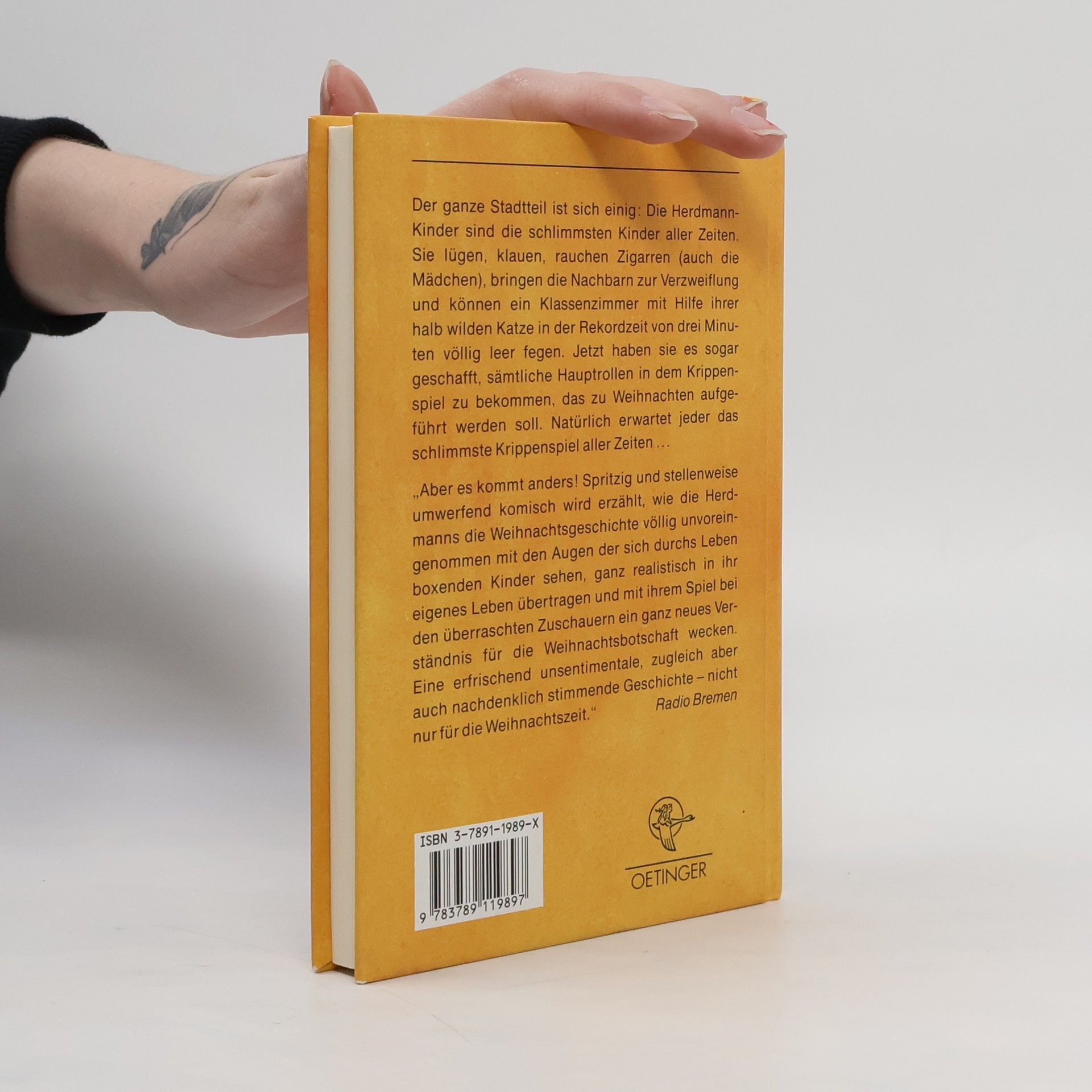 Der ganze Stadtteil ist sich einig: Die Herdmann-Kinder sind die schlimmsten Kinder aller Zeiten. Sie lügen, klauen, rauchen Zigarren (auch die Mädchen), bringen die Nachbarn zur Verzweiflung und können ein Klassenzimmer mit Hilfe ihrer halb wilden Katze in der Rekordzeit von drei Minuten völlig leer fegen. Jetzt haben sie es sogar geschafft, sämtliche Hauptrollen in dem Krippenspiel zu bekommen, das zu Weihnachten aufgeführt werden soll. Natürlich erwartet jeder das schlimmste Krippenspiel aller Zeiten...