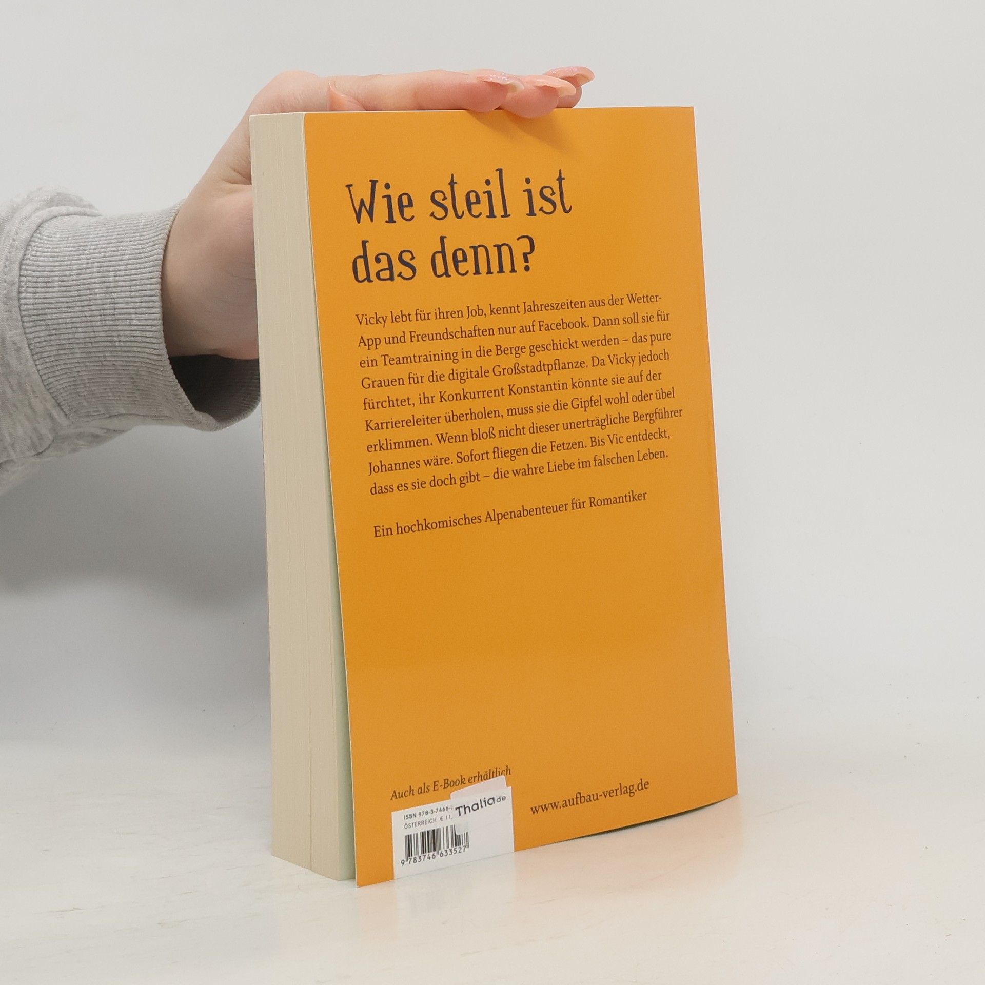 Wie steil ist das denn? Vicky lebt für ihren Job, kennt Jahreszeiten aus der Wetter-App und Freundschaften nur auf Facebook. Dann soll sie für ein Teamtraining in die Berge geschickt werden – das pure Grauen für die digitale Großstadtpflanze. Da Vicky jedoch fürchtet, ihr Konkurrent Konstantin könnte sie auf der Karriereleiter überholen, muss sie die Gipfel wohl oder übel erklimmen. Wenn da nicht dieser unerträgliche Bergführer Johannes wäre. Sofort fliegen die Fetzen. Bis Vic entdeckt, dass es sie doch gibt – die wahre Liebe im falschen Leben. Ein hochkomisches Alpenabenteuer für Romantiker