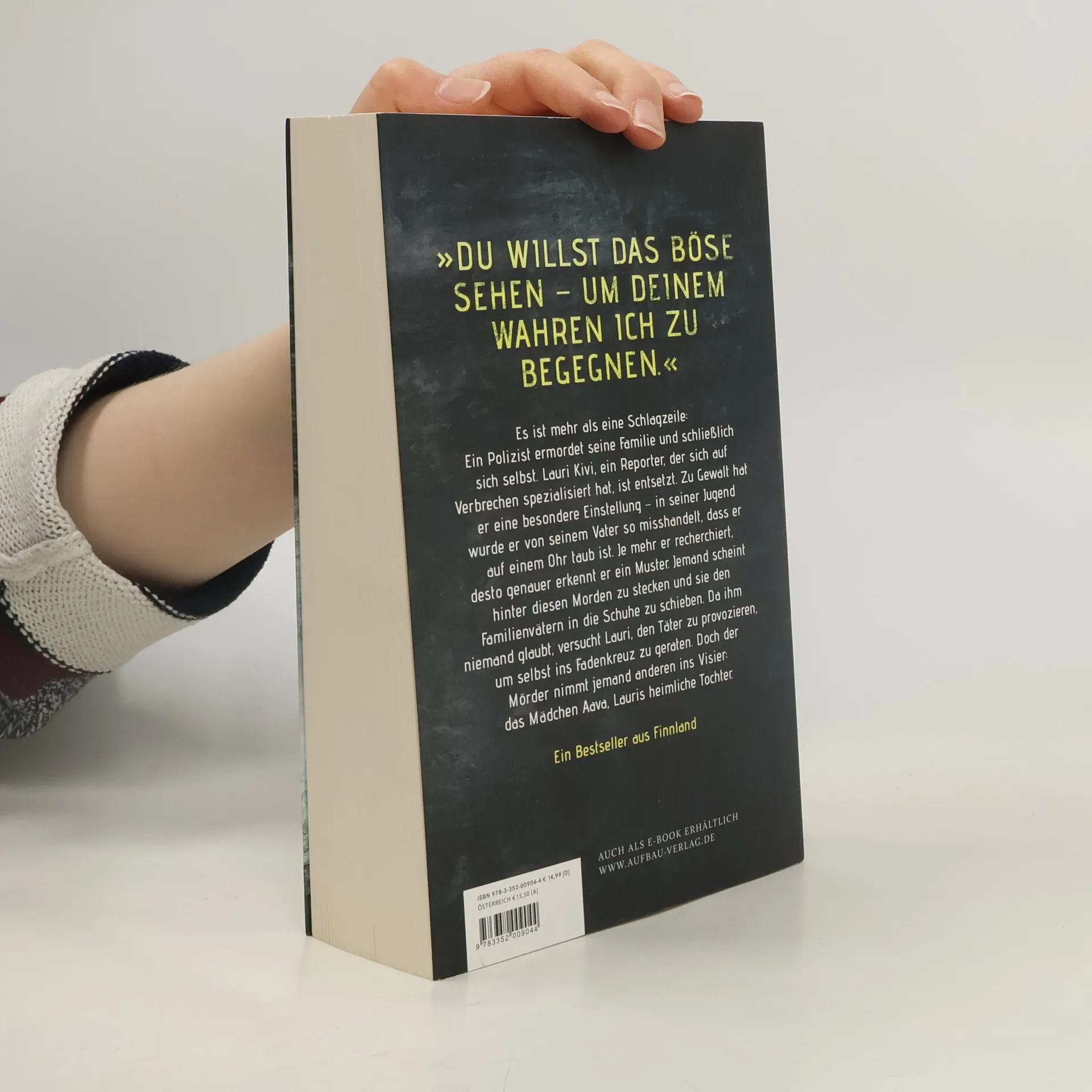 „Du willst das Böse sehen – um deinem wahren Ich zu begegnen.“ Es ist mehr als eine Schlagzeile: Ein Polizist ermordet seine Familie und schließlich sich selbst. Lauri Kivi, ein Reporter, der sich auf Verbrechen spezialisiert hat, ist entsetzt. Zu Gewalt hat er eine besondere Einstellung – in seiner Jugend wurde er von seinem Vater so misshandelt, dass er auf einem Ohr taub ist. Je mehr er recherchiert, desto genauer erkennt er ein Muster. Jemand scheint hinter diesen Morden zu stecken und sie den Familienvätern in die Schuhe zu schieben. Da ihm niemand glaubt, versucht Lauri, den Täter zu provozieren, um selbst ins Fadenkreuz zu geraten. Doch der Mörder nimmt jemand anderen ins Visier: das Mädchen Aava, Lauris heimliche Tochter. Ein Bestseller aus Finnland