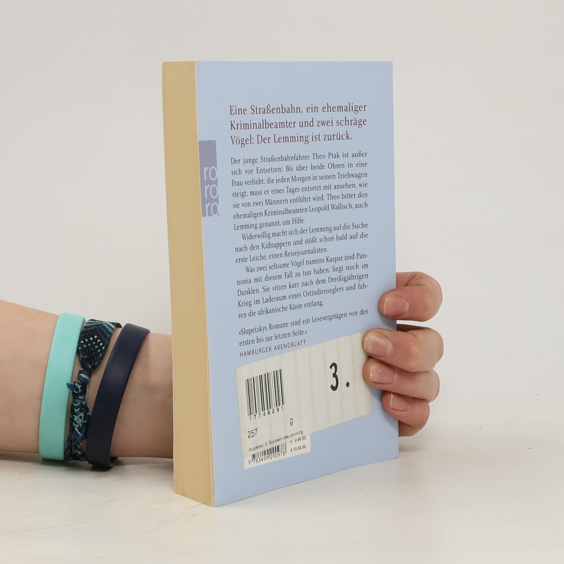 Eine Straßenbahn, ein ehemaliger Kriminalbeamter und zwei schräge Vögel: Der Lemming ist zurück.Der junge Straßenbahnfahrer Theo Ptak ist jedenfalls bis über beide Ohren in eine Frau verliebt, die jeden Morgen in seinen Triebwagen steigt. Eines Tages muss er entsetzt mit ansehen, wie sie von zwei Männern entführt wird. Theo bittet den ehemaligen Kriminalbeamten Leopold Wallisch, auch Lemming genannt, um Hilfe.Widerwillig macht sich der Lemming mit Theo auf die Suche nach den Kidnappern, und bald stoßen die beiden auf die erste Leiche, einen Reisejournalisten. Was zwei seltsame Vögel namens Kaspar und Pannonia mit diesem Fall zu tun haben, liegt noch im Dunklen. Sie sitzen kurz nach dem 30-jährigen Krieg im Laderaum eines Ostindienseglers und fahren die afrikanische Küste entlang.