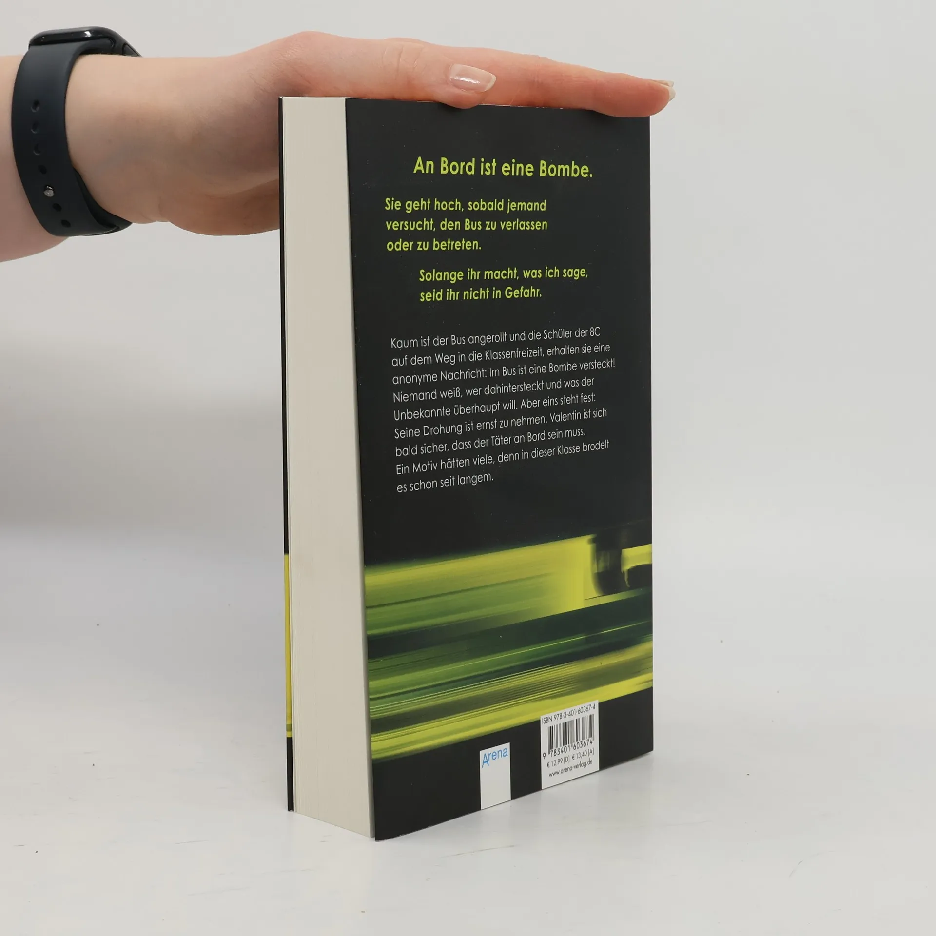 Kaum ist der Bus angerollt und die Schüler der 8C auf dem Weg in die Schülerfreizeit, erhalten sie eine anonyme Nachricht: Im Bus ist eine Bombe versteckt! Niemand weiß, wer dahintersteckt und was der Unbekannte überhaupt will. Aber eins steht fest: Seine Drohung ist ernst zu nehmen ist. Valentin ist sich bald sicher, dass der Täter an Bord sein muss. Ein Motiv hätten viele, denn in dieser Klasse brodelt es schon seit langem.