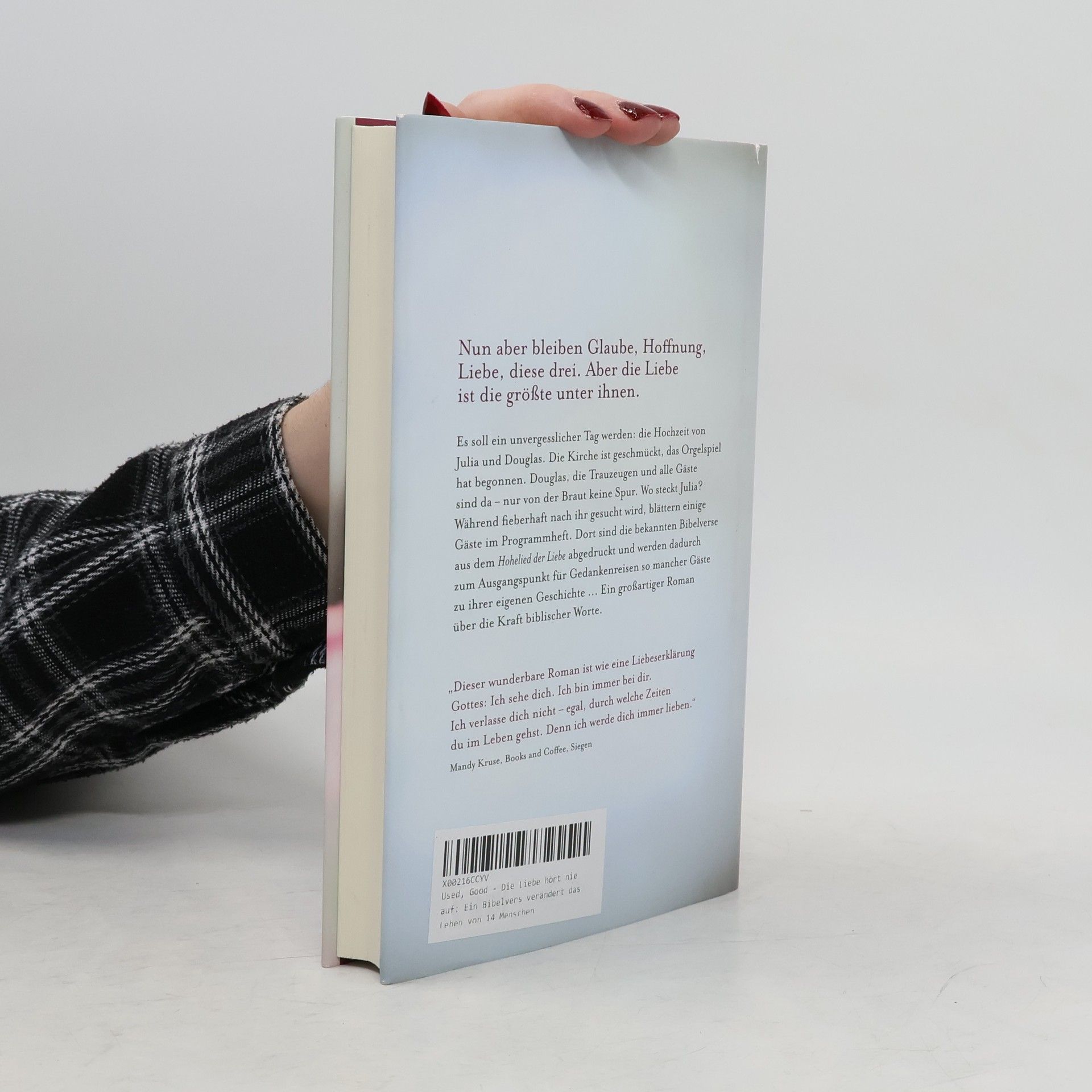 Es soll ein unvergesslicher Tag werden: die Hochzeit von Julia und Douglas. Die Kirche ist geschmückt, das Orgelspiel hat begonnen. Douglas, die Trauzeugen und alle Gäste sind da - nur von der Braut keine Spur. Wo steckt Julia? Während fieberhaft nach ihr gesucht wird, blättern einige Gäste im Programmheft. Dort sind die bekannten Bibelverse aus dem „Hohelied der Liebe“ abgedruckt und werden dadurch zum Ausgangspunkt für Gedankenreisen so mancher Gäste zu ihrer eigenen Geschichte ... Ein wunderbarer Roman über die Kraft biblischer Worte.
