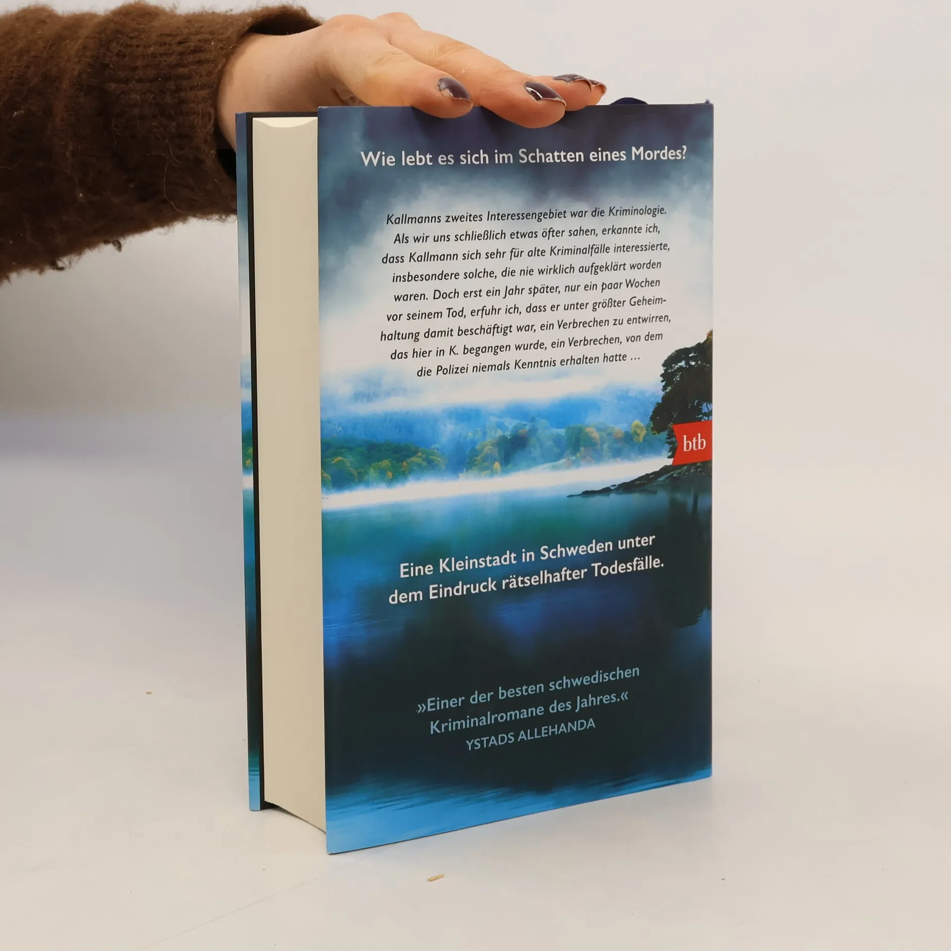 Wie lebt es sich im Schatten eines Mordes? Wer war Eugen Kallmann? Warum musste der beliebte Gesamtschullehrer in der beschaulichen schwedischen Kleinstadt sterben? Wirklich nur ein Unglücksfall, wie die Polizei behauptet? Als sein Nachfolger im Schwedischunterricht, Leon Berger, nach der langen Sommerpause seinen Dienst antritt, findet er im Pult unter Kallmanns Sachen eine Reihe von Tagebüchern, die sich als eine Mischung aus Dichtung und Wahrheit entpuppen und ihn schon bald daran zweifeln lassen, dass sein Vorgänger tatsächlich eines natürlichen Todes gestorben ist. Denn in seinen Einträgen behauptet Kallmann unter anderem, er würde die Gabe besitzen, in den Augen anderer Menschen erkennen zu können, ob sie gemordet haben. Und er scheint in den letzten Monaten seines Lebens einem nie entdeckten und nie gesühnten Verbrechen auf der Spur gewesen zu sein. Leon Berger will den Fall Kallmann lösen – seine privaten Ermittlungen setzen etwas in Gang, das schließlich die ganze Kleinstadt erschüttert.