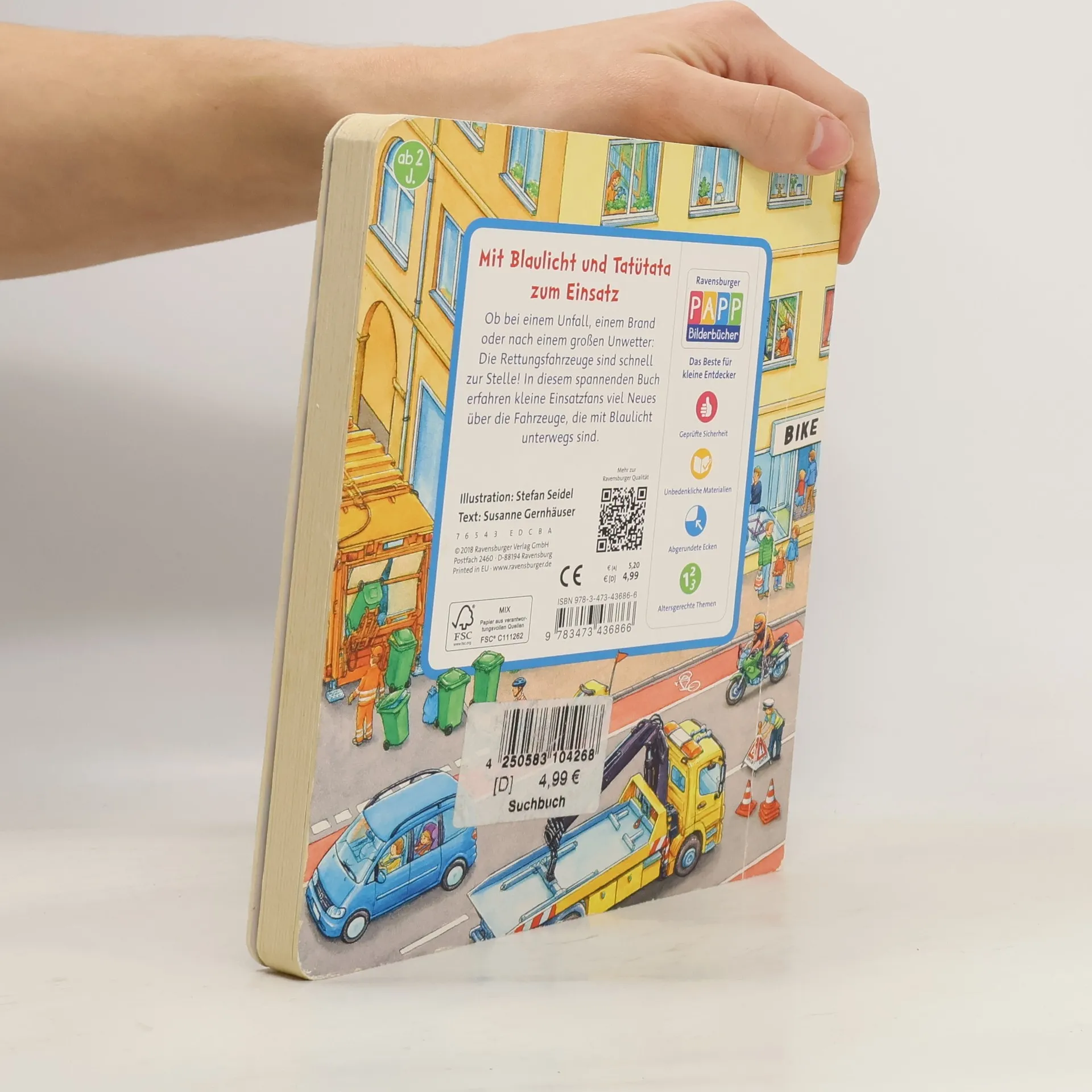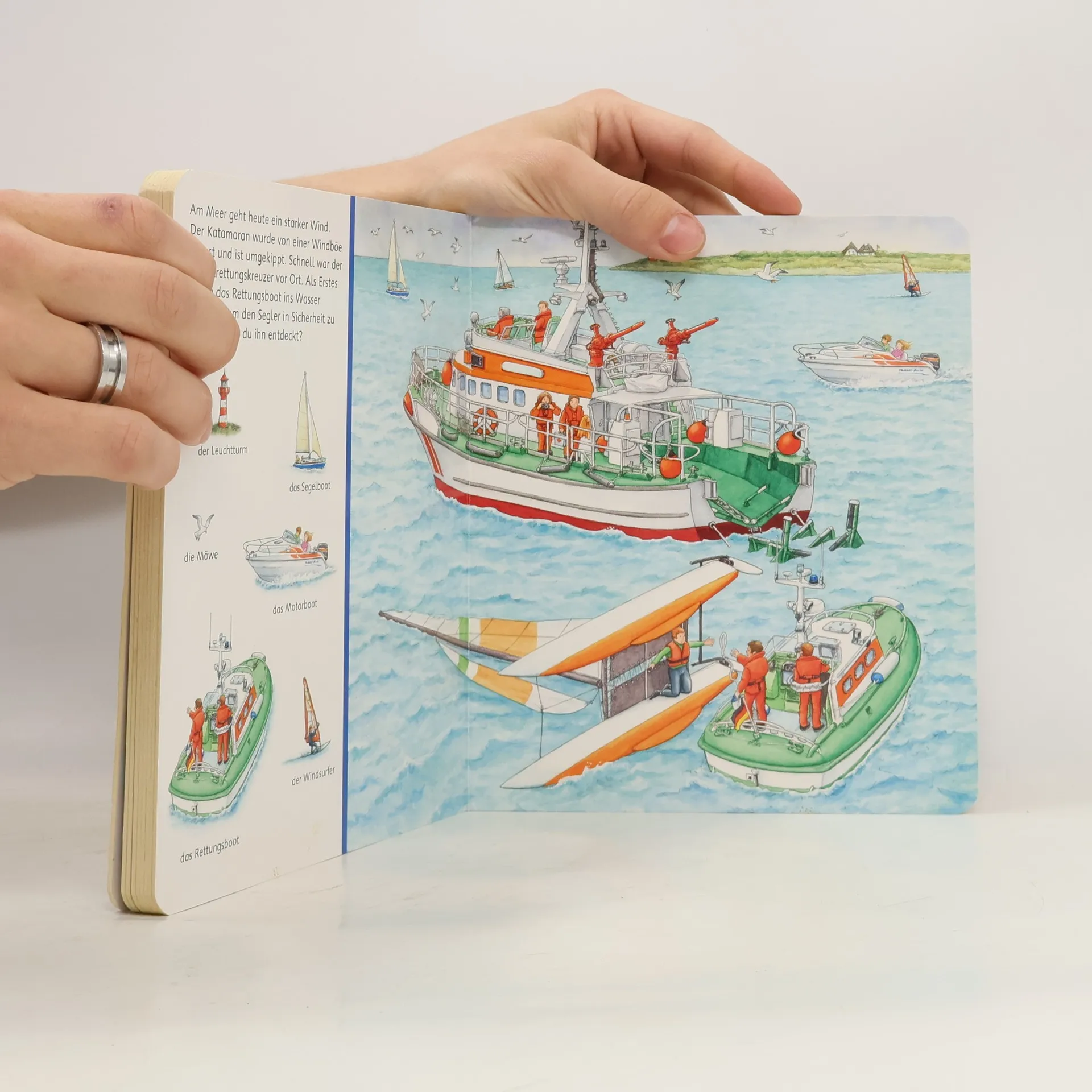 In diesem Buch findet jeder Fahrzeugspezialist seine Lieblingsseite: Neben den bekannten Rettungsfahrzeugen der Feuerwehr, der Polizei und den Rettungsdiensten gibt es auch welche, die man seltener zu sehen bekommt. Da sind der Rettungshubschrauber, die Seenotrettung und die Fahrzeuge des Technischen Hilfswerks. Hier kannst du lernen, wer in welchen Notlagen helfen kann. Die über 70 kleinen Suchbilder fordern dazu auf, sich in die Szenen zu vertiefen und die Gegenstände wiederzufinden und zu benennen. Das macht Spaß und fördert die Konzentrationsfähigkeit. Mit Blaulicht und Tatütata zum Einsatz! Hier sind alle wichtigen Rettungsfahrzeuge vertreten. Ob nach einem Unfall, einem Brand oder einem großen Unwetter: Die Rettungsfahrzeuge sind schnell zur Stelle! Die Feuerwehr, die Polizei und der Krankenwagen faszinieren viele Kinder. Aber natürlich auch die Fahrzeuge, die es seltener zu sehen gibt wie den Rettungshubschrauber, den Seenotrettungskreuzer und die Fahrzeuge des Technischen Hilfswerks: hier können sie alle in Ruhe bei der Arbeit betrachtet werden. Die kleinen Suchbilder fordern dazu auf, genau hinzusehen und das Wiederfinden im Bild macht Spaß und sorgt für Erfolgserlebnisse!