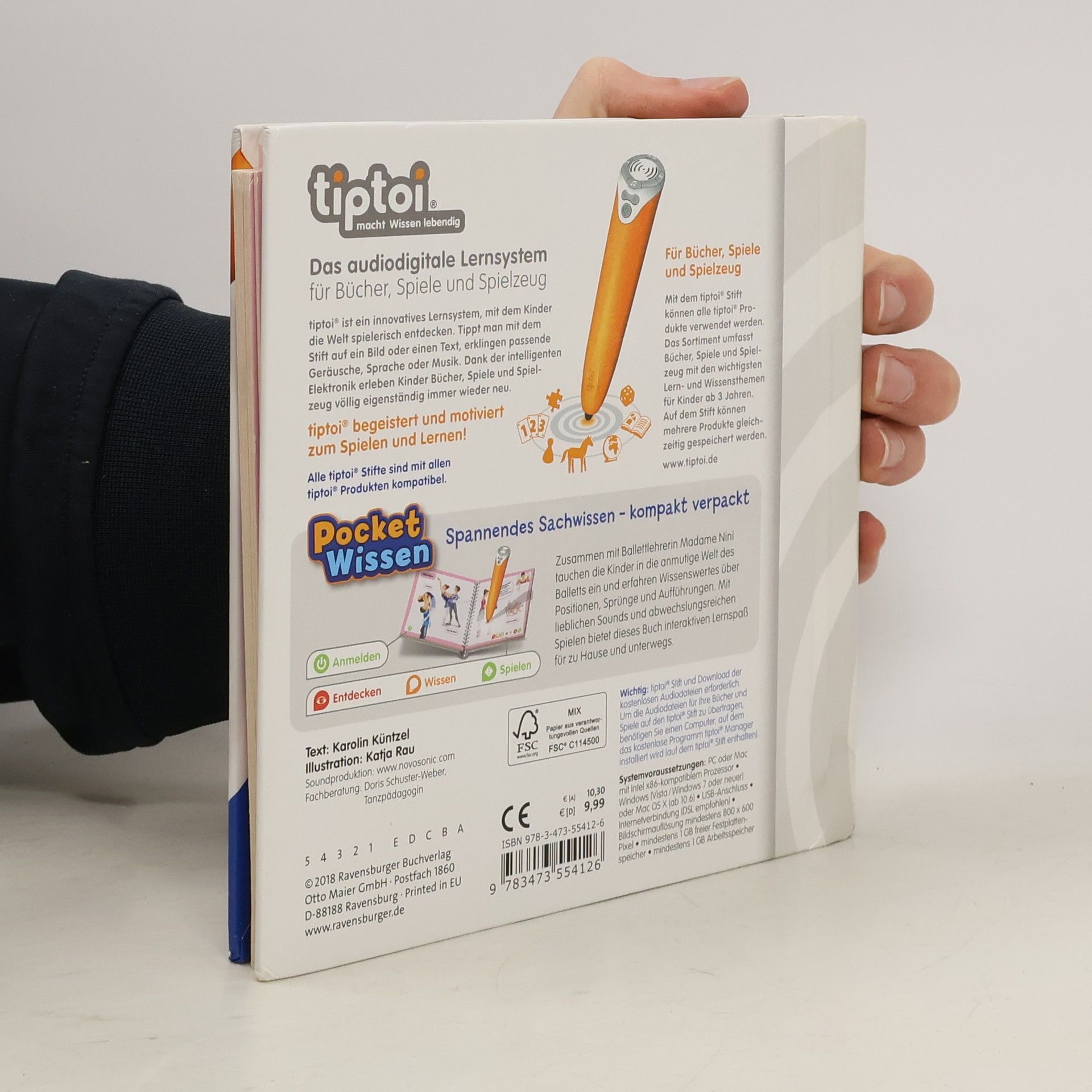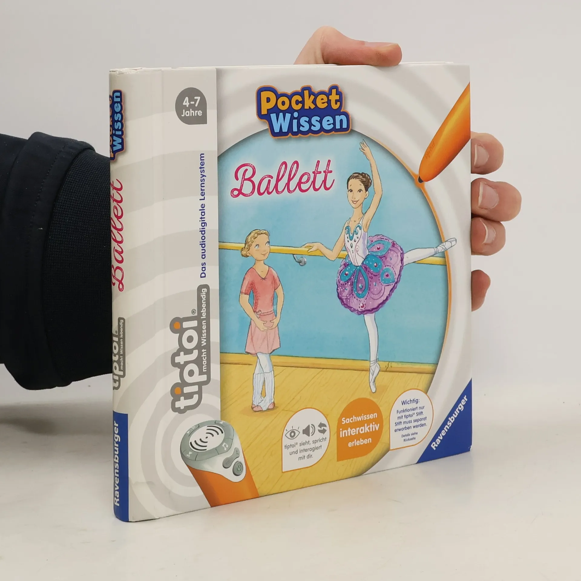 Kompaktes Sachwissen zum Mitnehmen rund um das Thema „Ballett“ Mit „tiptoi Pocket Wissen: Ballett“ erleben Kinder die Magie dieses Tanzes hautnah. Sie erfahren Wissenswertes über seine Entstehung sowie über Positionen und Sprünge, bewundern traumhafte Kostüme und blicken hinter die Kulissen einer Tanzschule. Zum Schluss findet eine Ballettvorführung auf der großen Bühne statt. Die vielen Sounds und Bilder machen diesen Band zum idealen Begleiter für kleine Ballerinen! Ob Pferde und Ponys, Dinosaurier, Ballett oder Feuerwehr, mit der Reihe tiptoi Pocket Wissen können Kinder von 4 - 7 Jahren all ihre Lieblingsthemen entdecken und sammeln. Jeder Band bietet kompaktes Sachwissen mit vielen interessanten Informationen, authentischen Geräuschen und kniffligen Spielen. Der tiptoi-Stift lässt die kindgerecht aufgearbeiteten Sachthemen lebendig werden. So können sich die Kinder spannende Wissensinhalte mit viel Spaß selbständig und interaktiv aneignen. Die abwechslungsreichen Spiele helfen dabei, das gelernte Wissen zu vertiefen. Dank des handlichen Formats ist tiptoi Pocket Wissen ideal für unterwegs, als Geschenk zum Kindergeburtstag oder zum Schmökern zu Hause. So wird Wissen einfach überall lebendig! tiptoi-Stift nicht enthalten. Muss separat erworben werden.