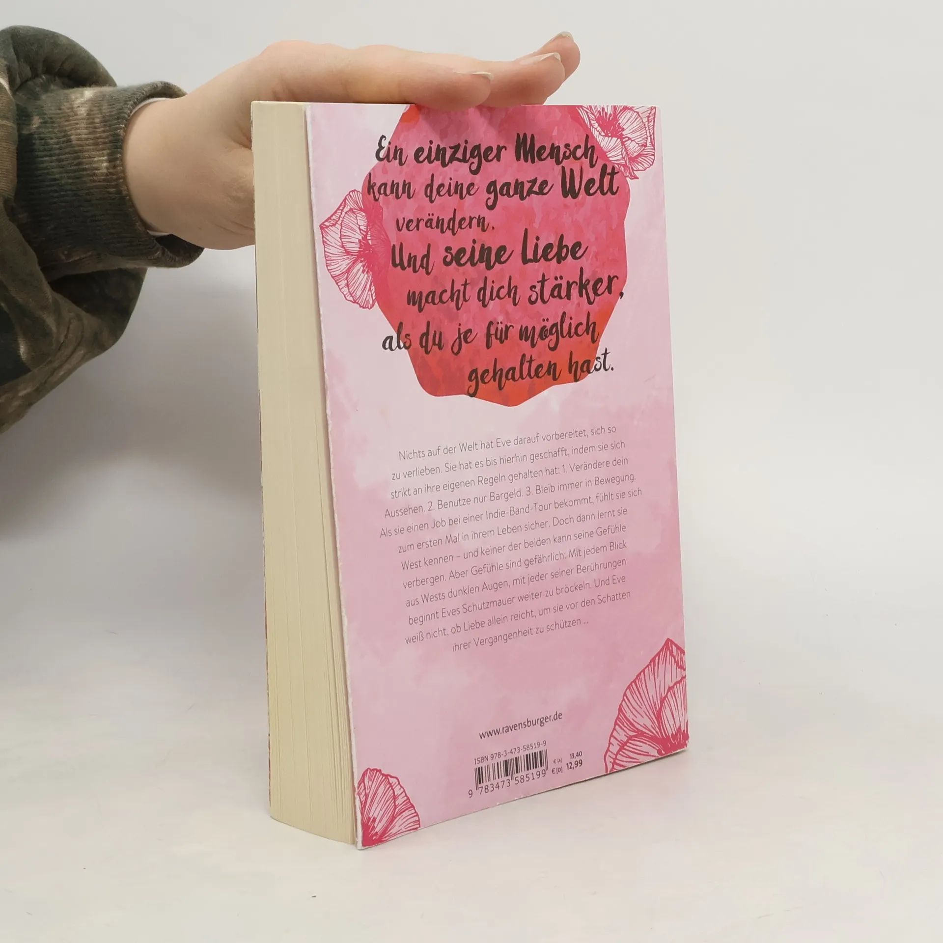 Ein einziger Mensch kann deine ganze Welt verändern und seine Liebe macht dich stärker, als du je für möglich gehalten hast. Eve hat sich immer an ihre Regeln gehalten: 1. Verändere dein Aussehen. 2. Benutze nur Bargeld. 3. Bleib immer in Bewegung. Doch als sie einen Job bei einer Indie-Band-Tour annimmt, findet sie zum ersten Mal Sicherheit. Dann trifft sie West, und ihre Gefühle können nicht länger verborgen bleiben. Doch diese Gefühle sind gefährlich: Mit jedem Blick aus Wests dunklen Augen und jeder Berührung bröckelt Eves Schutzmauer. Sie fragt sich, ob Liebe allein ausreicht, um sie vor den Schatten ihrer Vergangenheit zu schützen. Als West ihr seine Jacke über die Schultern legt, spürt sie zum ersten Mal, dass jemand sich um sie kümmert. Niemand hat je so etwas für sie getan oder sich für ihr Wohl interessiert. Wests Lächeln löst etwas in ihr aus. Shannon Greenland beschreibt in diesem Werk, wie Angst sowohl schwache als auch starke Menschen beeinflussen kann und dass der Umgang mit dieser Angst entscheidend für das Leben ist, das man führen möchte. Es ist wichtig, sich Hilfe zu suchen und die Angst nicht das eigene Leben bestimmen zu lassen.