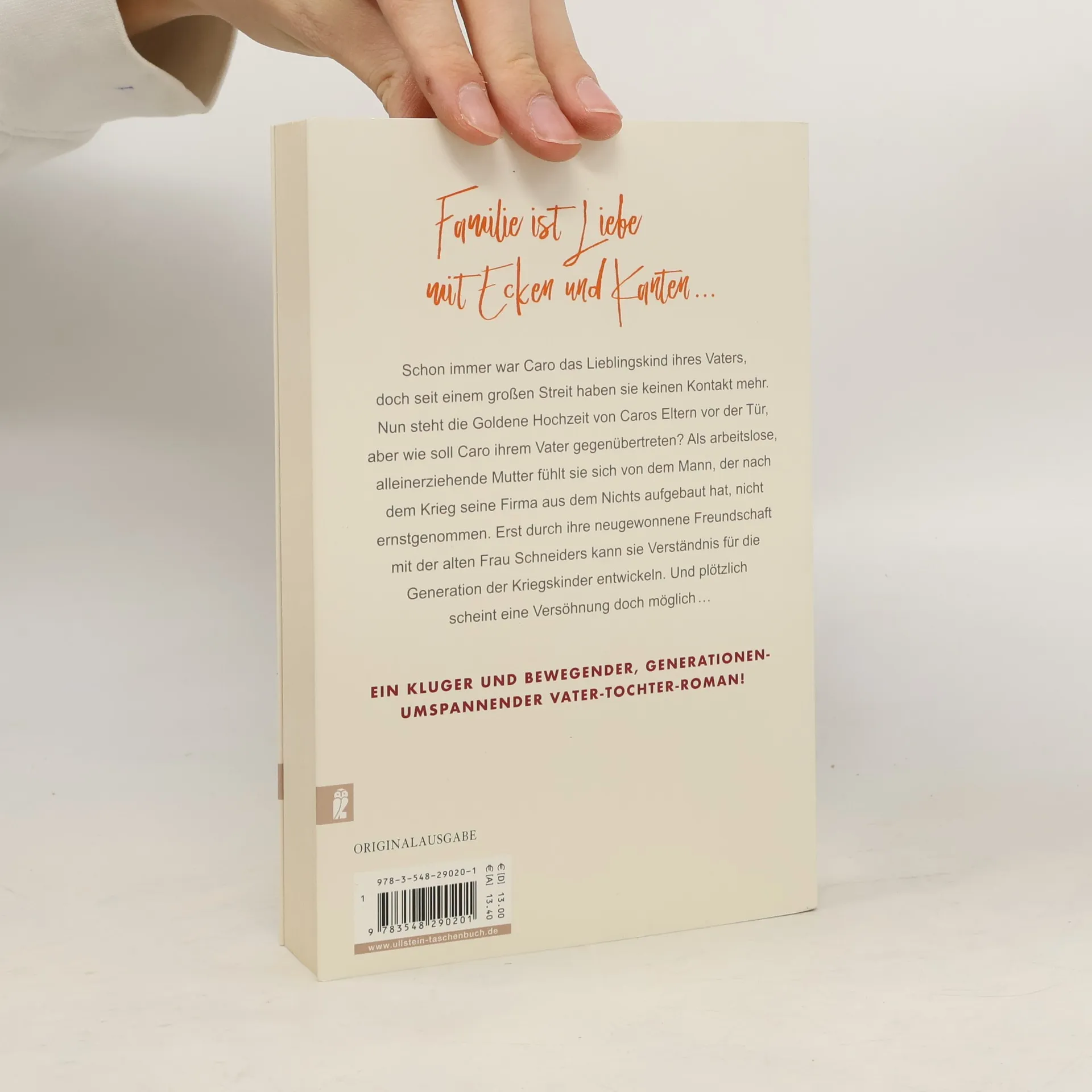 Familie ist Liebe mit Ecken und Kanten Schon immer war Caro das Lieblingskind ihres Vaters, doch seit einem großen Streit haben sie keinen Kontakt mehr. Nun steht die Goldene Hochzeit von Caros Eltern vor der Tür, aber wie soll Caro ihrem Vater gegenübertreten? Als arbeitslose, alleinerziehende Mutter fühlt sie sich von dem Mann, der nach dem Krieg seine Firma aus dem Nichts aufgebaut hat, nicht ernstgenommen. Erst durch ihre neugewonnene Freundschaft mit der alten Frau Schneiders kann sie Verständnis für die Generation der Kriegskinder entwickeln. Und plötzlich scheint eine Versöhnung doch möglich … Ein kluger und bewegender, generationenumspannender Vater-Tochter-Roman.