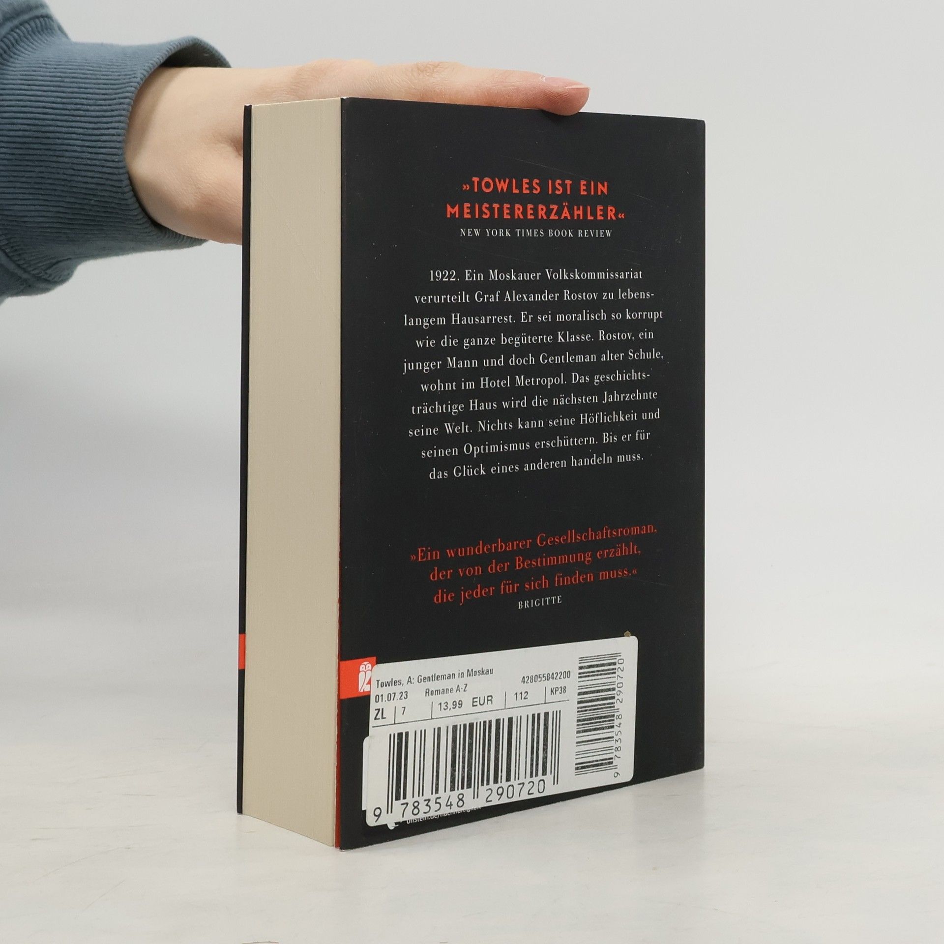 Moskau, 1922. Der genussfreudige Lebemann Graf Rostov wird verhaftet und zu lebenslangem Hausarrest verurteilt, ausgerechnet im Hotel Metropol, dem ersten Haus am Platz. Er muss alle bisher genossenen Privilegien aufgeben und eine Arbeit als Hilfskellner annehmen. Rostov mit seinen 30 Jahren ist ein äußerst liebenswürdiger, immer optimistischer Gentleman. Trotz seiner eingeschränkten Umstände lebt er ganz seine Überzeugung, dass selbst kleine gute Taten einer chaotischen Welt Sinn verleihen. Aber ihm bleibt nur der Blick aus dem Fenster, während draußen Russland stürmische Dekaden durchlebt. Seine Stunde kommt, als eine alte Freundin ihm ihre kleine Tochter anvertraut. Das Kind ändert Rostovs Leben von Grund auf. Für das Mädchen und sein Leben wächst der Graf über sich hinaus. „Towles ist ein Meistererzähler“ New York Times Book Review „Eine charmante Erinnerung an die Bedeutung von gutem Stil“ Washington Post „Elegant, dabei gleichzeitig filigran und üppig wie ein Schmuckei von Fabergé“ O, the Oprah Magazine