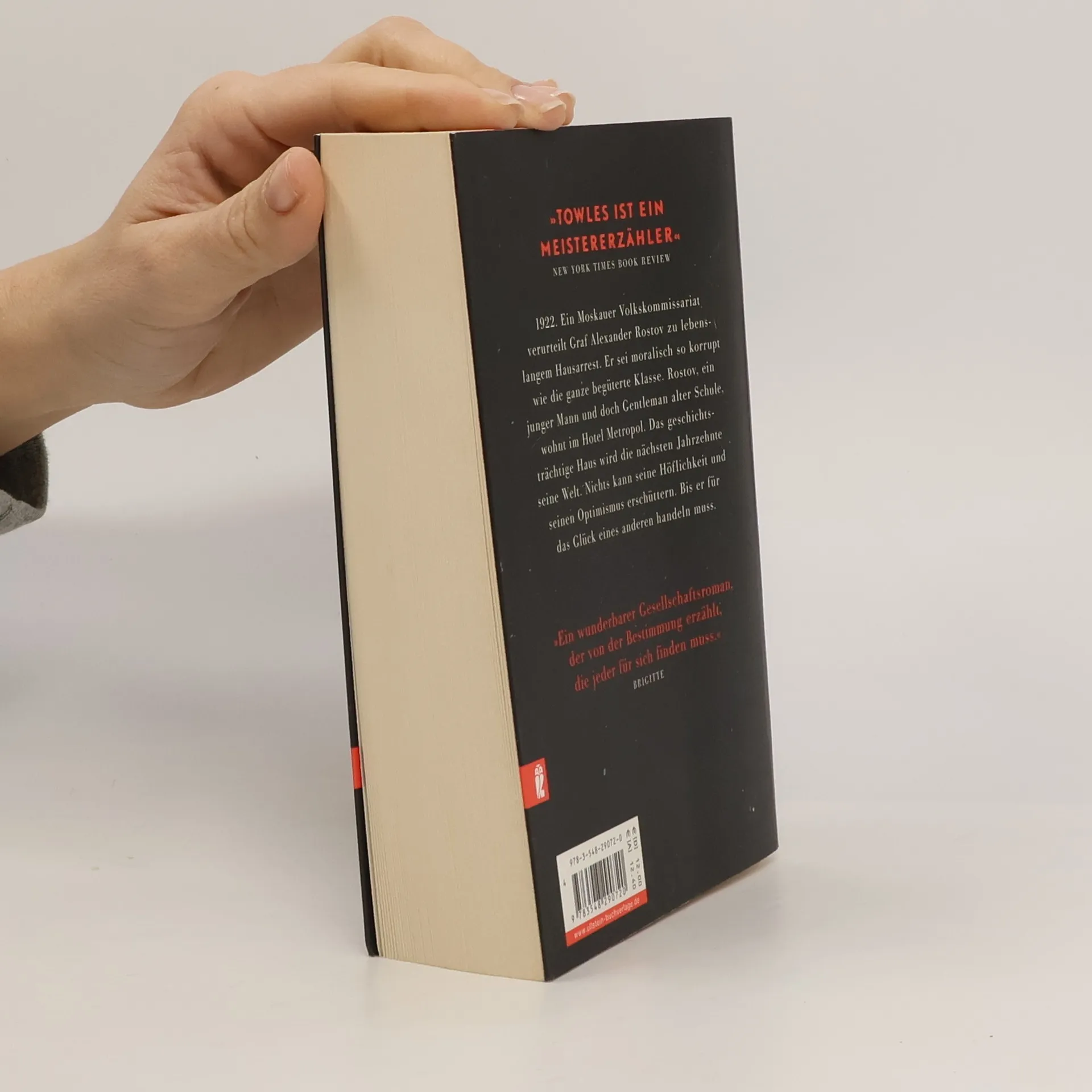 Moskau, 1922. Der genussfreudige Lebemann Graf Rostov wird verhaftet und zu lebenslangem Hausarrest verurteilt, ausgerechnet im Hotel Metropol, dem ersten Haus am Platz. Er muss alle bisher genossenen Privilegien aufgeben und eine Arbeit als Hilfskellner annehmen. Rostov mit seinen 30 Jahren ist ein äußerst liebenswürdiger, immer optimistischer Gentleman. Trotz seiner eingeschränkten Umstände lebt er ganz seine Überzeugung, dass selbst kleine gute Taten einer chaotischen Welt Sinn verleihen. Aber ihm bleibt nur der Blick aus dem Fenster, während draußen Russland stürmische Dekaden durchlebt. Seine Stunde kommt, als eine alte Freundin ihm ihre kleine Tochter anvertraut. Das Kind ändert Rostovs Leben von Grund auf. Für das Mädchen und sein Leben wächst der Graf über sich hinaus. „Towles ist ein Meistererzähler“ New York Times Book Review „Eine charmante Erinnerung an die Bedeutung von gutem Stil“ Washington Post „Elegant, dabei gleichzeitig filigran und üppig wie ein Schmuckei von Fabergé“ O, the Oprah Magazine