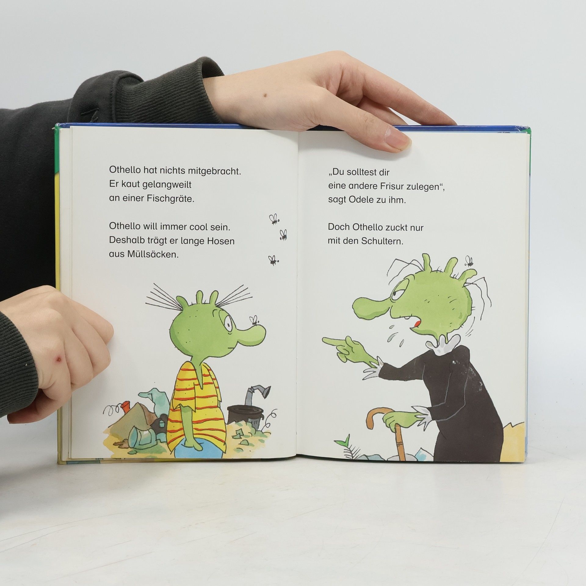 Wer kocht am grätigsten? Von überall her folgen die Olchis der Einladung ihrer Urgroßtante Odele. Sogar Mister Paddock aus London und der faule König reisen nach Krempeldorf. Die alte Kratzbürste ist mit 1.700 Jahren die Älteste der Sippe und hat eine äußerst wertvolle (und extrem wohlriechende) Stinkersocke aus ihrer Kindheit zu vererben. Sie verkündet einen Wettbewerb: Wer ihr das Beste kocht, soll die Stinkersocke bekommen. Alle Olchis machen sich sofort ans Werk. Und die Stinkersocke? Die hat Drache Feuerstuhl gefunden: Sie duftete so köstlich! Das gab es noch nie: Alle beliebten Olchis sind in einer Geschichte versammelt und Urgroßtante Odele hat ihren ersten Auftritt.