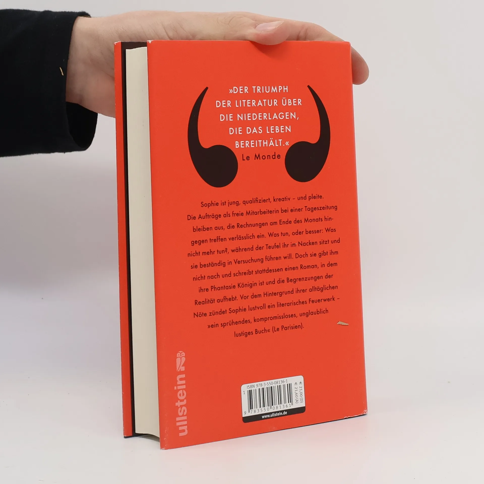 „Der Triumph der Literatur über die Niederlagen, die das Leben bereithält.“ Le Monde Sophie ist jung, qualifiziert, kreativ – und hat keinen Cent mehr in der Tasche. Die Aufträge als freie Mitarbeiterin bei einer Tageszeitung bleiben aus, die Rechnungen am Ende des Monats hingegen treffen verlässlich ein. Was tun, oder besser: Was nicht mehr tun?, fragt sie sich, während der Teufel ihr im Nacken sitzt und sie beständig in Versuchung führen will. Doch gibt sie ihm nicht nach und schreibt stattdessen einen Roman, in dem ihre Phantasie Königin ist und die Begrenzungen der Realität aufhebt. Vor dem Hintergrund ihrer alltäglichen Nöte, ihrem Kampf mit den Tücken der Bürokratie und ihrer wachsenden Vereinsamung zündet Sophie lustvoll ein literarisches Feuerwerk, setzt ihrer Misere ein reiches Spiel der Sprache und Formen entgegen – „ein sprühendes, kompromissloses, unglaublich lustiges Buch“ (Le Parisien).