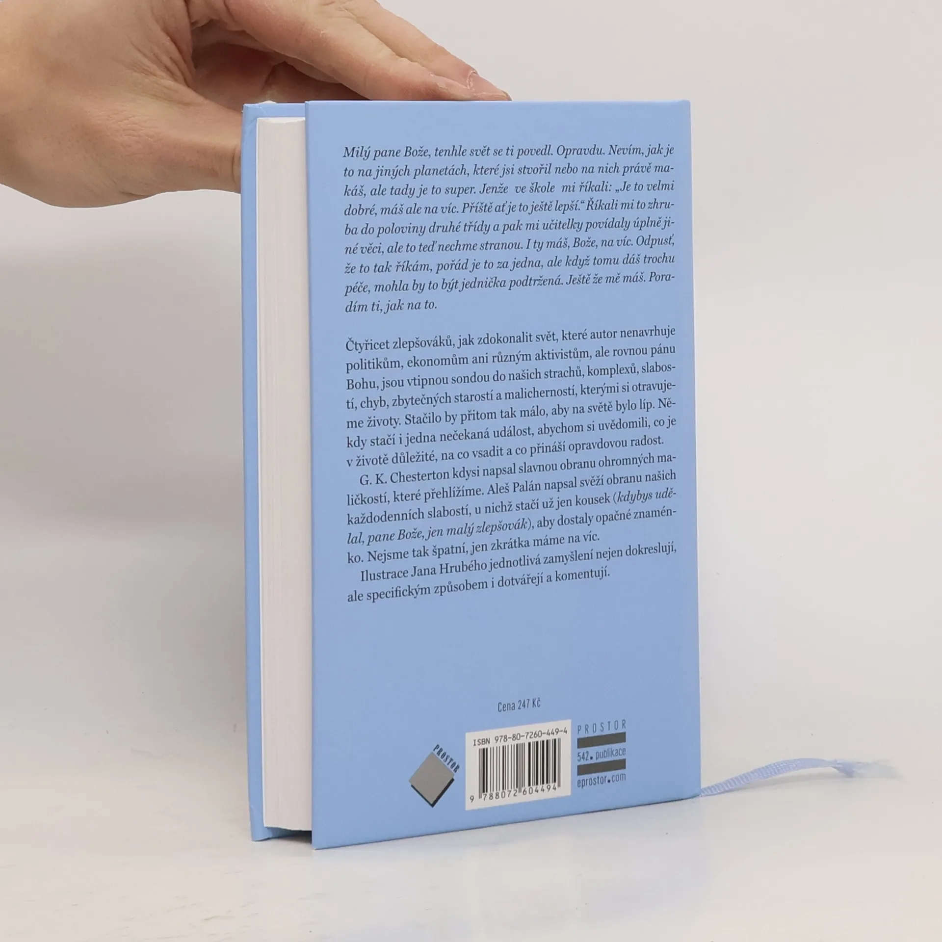 Milý pane Bože, tenhle svět se ti povedl. Opravdu. Nevím, jak je to na jiných planetách, které jsi stvořil nebo na nich právě makáš, ale tady je to super. Jenže ve škole mi říkali: „Je to velmi dobré, máš ale na víc. Příště ať je to ještě lepší.“ Říkali mi to zhruba do poloviny druhé třídy a pak mi učitelky povídaly úplně jiné věci, ale to teď nechme stranou. I ty máš, Bože, na víc. Odpusť, že to tak říkám, pořád je to za jedna, ale když tomu dáš trochu péče, mohla by to být jednička podtržená. Ještě že mě máš. Poradím ti, jak na to. Čtyřicet zlepšováků, jak zdokonalit svět, které autor nenavrhuje politikům, ekonomům ani různým aktivistům, ale rovnou pánu Bohu, jsou vtipnou sondou do našich strachů, komplexů, slabostí, chyb, zbytečných starostí a malicherností, kterými si otravujeme životy. Stačilo by přitom tak málo, aby na světě bylo líp. Někdy stačí i jedna nečekaná událost, abychom si uvědomili, co je v životě důležité, na co vsadit a co přináší opravdovou radost. G. K. Chesterton kdysi napsal slavnou obranu ohromných maličkostí, které přehlížíme. Aleš Palán napsal svěží obranu našich každodenních slabostí, u nichž stačí už jen kousek (kdybys udělal, pane Bože, jen malý zlepšovák), aby dostaly opačné znaménko. Nejsme tak špatní, jen zkrátka máme na víc. Ilustrace Jana Hrubého jednotlivá zamyšlení nejen dokreslují, ale specifickým způsobem i dotvářejí a komentují.