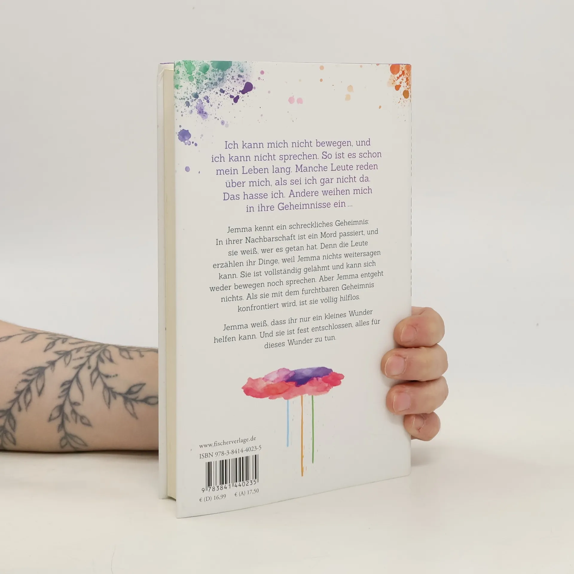 »Ich kann mich nicht bewegen, und ich kann nicht sprechen. So ist es schon mein Leben lang. Manche Leute reden über mich, als sei ich gar nicht da. Das hasse ich. Andere weihen mich in ihre Geheimnisse ein…« Jemma kennt ein schreckliches Geheimnis: In ihrer Nachbarschaft ist ein Mord passiert, und sie weiß, wer es getan hat. Denn die Leute erzählen ihr Dinge, weil Jemma nichts weitersagen kann. Sie ist vollständig gelähmt und kann sich weder bewegen noch sprechen. Aber Jemma entgeht nichts. Als sie mit dem furchtbaren Geheimnis konfrontiert wird, ist sie völlig hilflos. Jemma weiß, dass ihr nur ein kleines Wunder helfen kann. Und sie ist fest entschlossen, alles für dieses Wunder zu tun.
