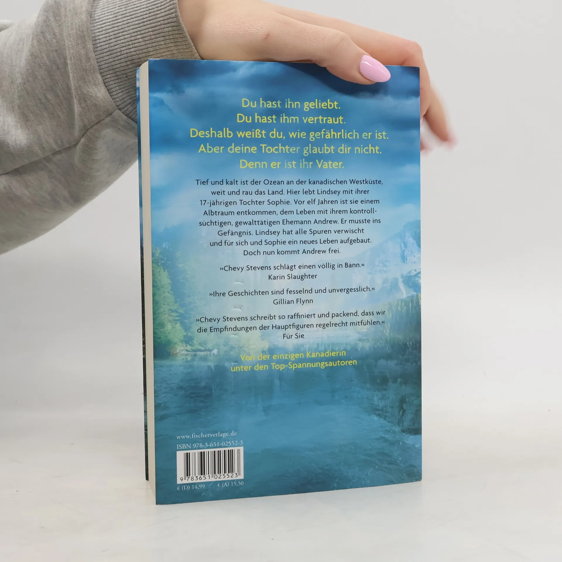 Du hast ihn geliebt. Du hast ihm vertraut. Deshalb weißt du, wie gefährlich er ist. Aber deine Tochter glaubt dir nicht. Denn er ist ihr Vater. »Chevy Stevens schlägt einen völlig in Bann.« Karin Slaughter »Ihre Geschichten sind packend und unvergesslich.« Gillian Flynn Tief und kalt ist der Ozean an der kanadischen Westküste, weit und rau das Land. Hier lebt Lindsey mit ihrer 17-jährigen Tochter Sophie. Vor elf Jahren ist sie in letzter Minute ihrem gewalttätigen Ehemann Andrew entkommen. Er musste ins Gefängnis. Lindsey hat alle Spuren verwischt und für sich und Sophie ein neues Leben aufgebaut. Doch nun kommt Andrew frei.