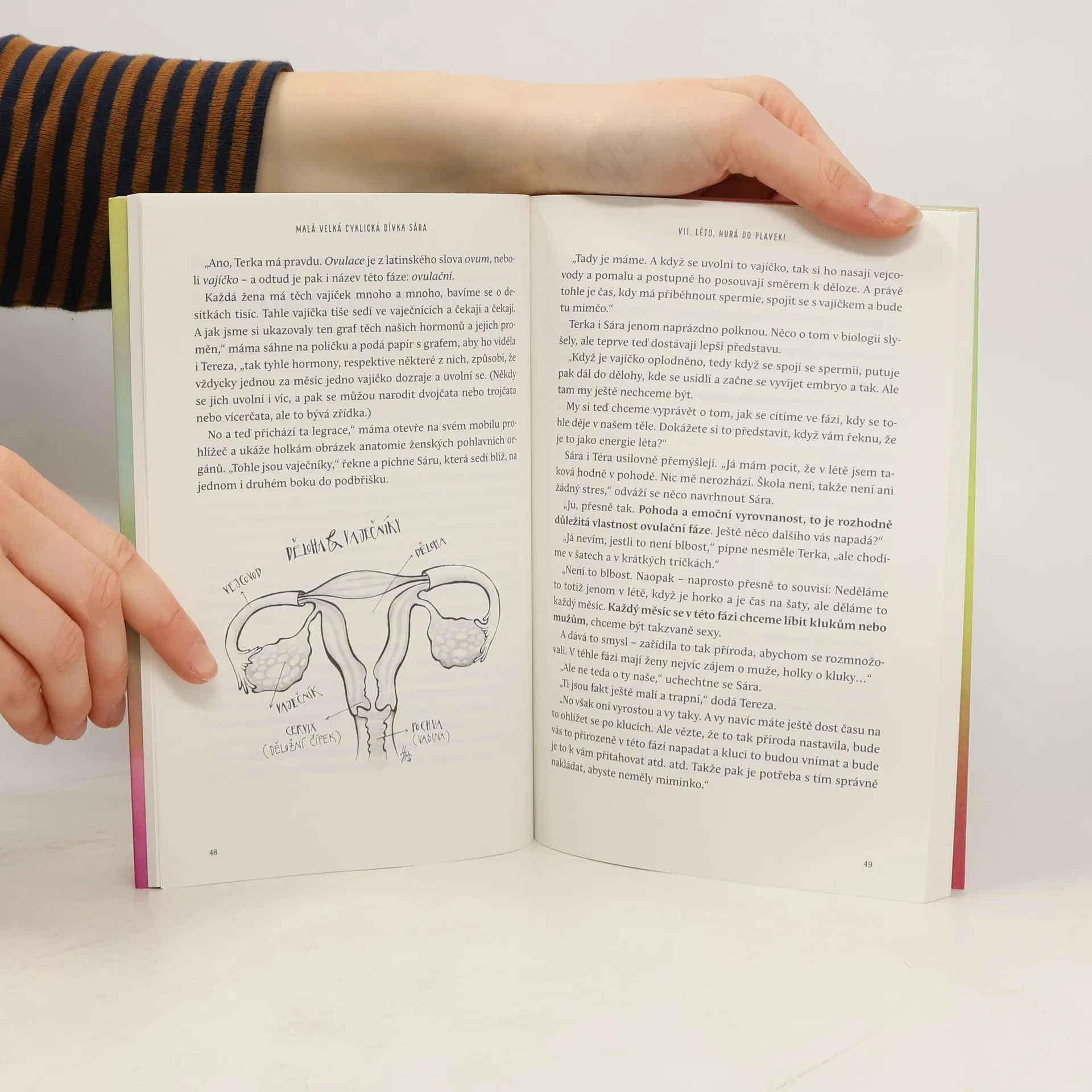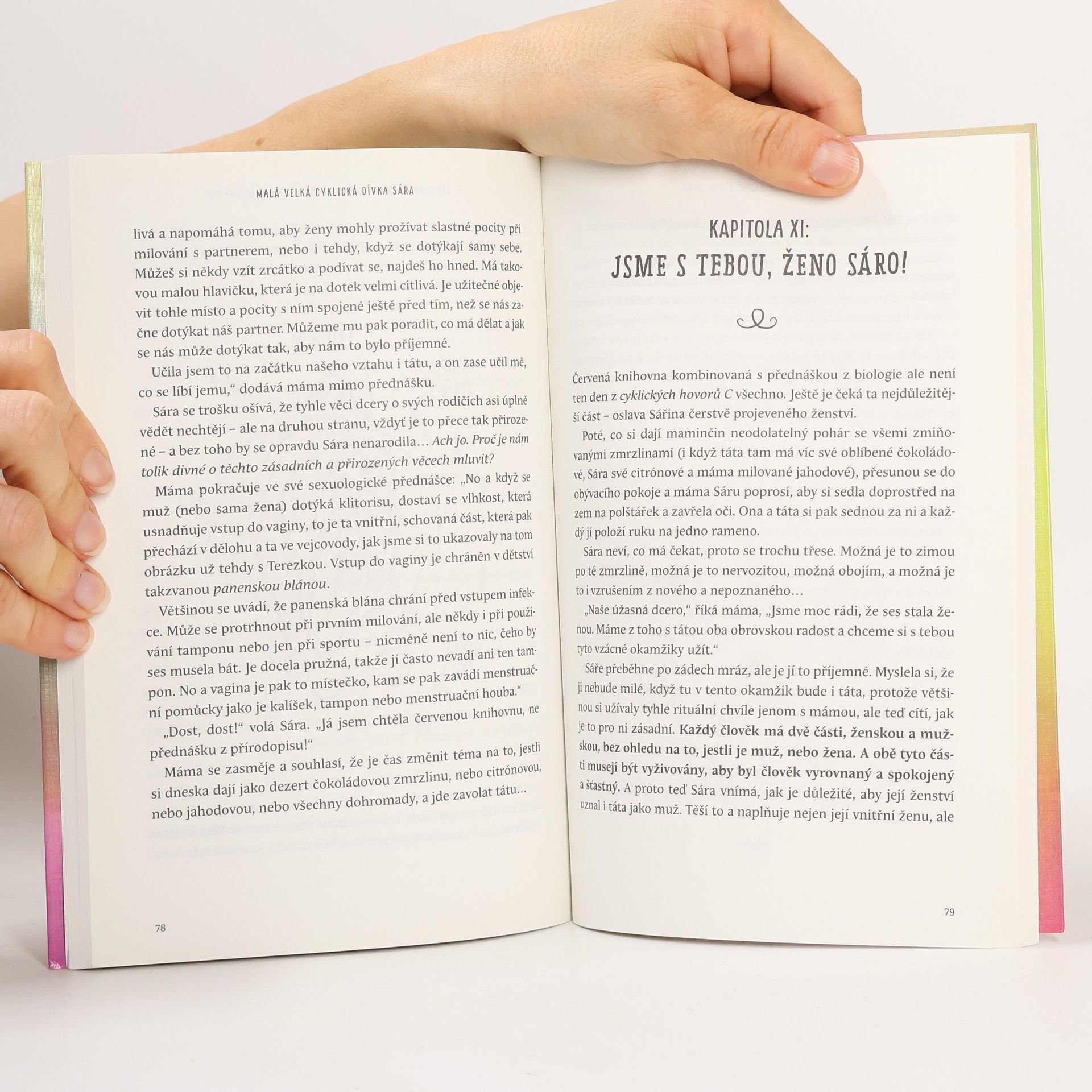 Konečně cyklická kniha pro vaše dcery! Cool cyklický příběh z dnešní doby, který baví číst dcery i jejich rodiče! Příběh 13leté Sáry, jež se právě mění z dívky v ženu. Kniha zodpovídá řadu zásadních otázek, které si dospívající dívka může klást: Co se to se mnou teď děje? Proč a jak se mění moje tělo? Proč jsem najednou náladová? Jak bude vypadat moje první menstruace? Co je to ta antikoncepce? Co si mám myslet o hormonálních pilulkách? Čím se od sebe liší ty 4 cyklické fáze? Jaká v nich jsem a jak je můžu využít, třeba ve škole? Rodičům pak tato kniha poskytuje netradiční a odlehčený návod, jak dceři předat všechny podstatné informace o cykličnosti, menstruaci, sexualitě i antikoncepci – a nevynechává ani tak důležitou roli táty!