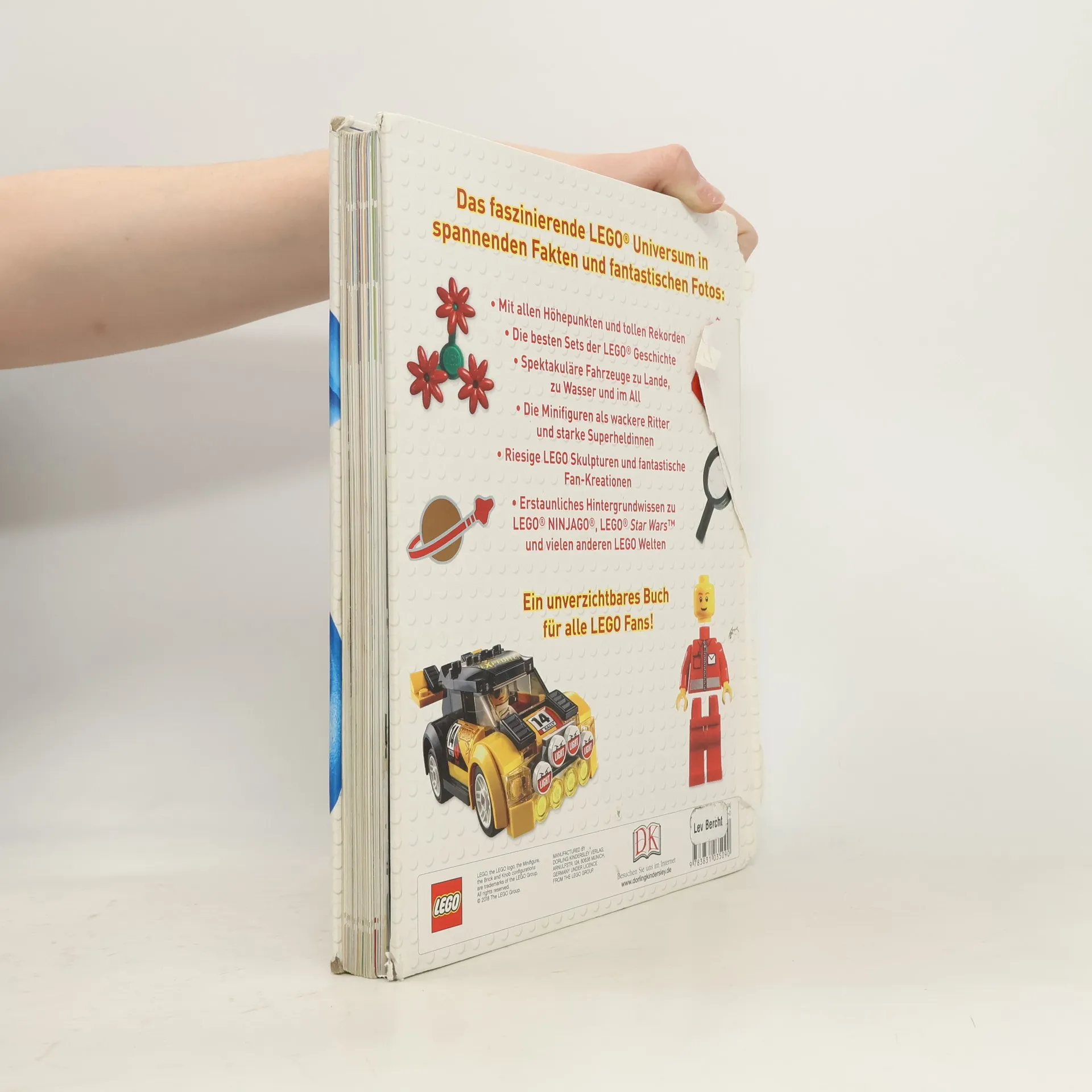 Dieses LEGO® Buch ist ein unentbehrlicher Begleiter für Fans! Hier gibt es erstaunliche Fakten zum gesamten LEGO® Universum: umfassendes und beeindruckendes Wissen über LEGO® Bausteine und Teile, Fahrzeuge, Figuren oder Monster in fünf großen, reich bebilderten Kapiteln rund um die LEGO® Themenwelten. Mit verblüffenden Vergleichen, witzigen Hintergründen, Top-Listen, Stein-Statistiken und lustigen Kommentaren von den beliebten Minifiguren – alles verpackt unter einem tollen Cover mit Noppenprägung. In coolen Rubriken wie „Faktenstapel“, „Schau genau“, „Wahnsinn“ oder „Echt?“ werden spannende Details enthüllt. Auf den Seiten dieses grandiosen LEGO® Buchs kommt man aus dem Staunen gar nicht mehr heraus: Wer wusste zum Beispiel, dass ein LEGO® Modell an Bord der Discovery 8,5 Kilometer durchs All geflogen ist? Oder, dass der größte echte LEGO® Turm 35 Meter hoch war und damit einen Weltrekord erzielte? Von der Holzente als erstes Spielzeug über bekannte Sets bis zu den eigenen TV-Serien und LEGO® Movies versammelt sich hier die ganze LEGO® Welt in einem Buch!