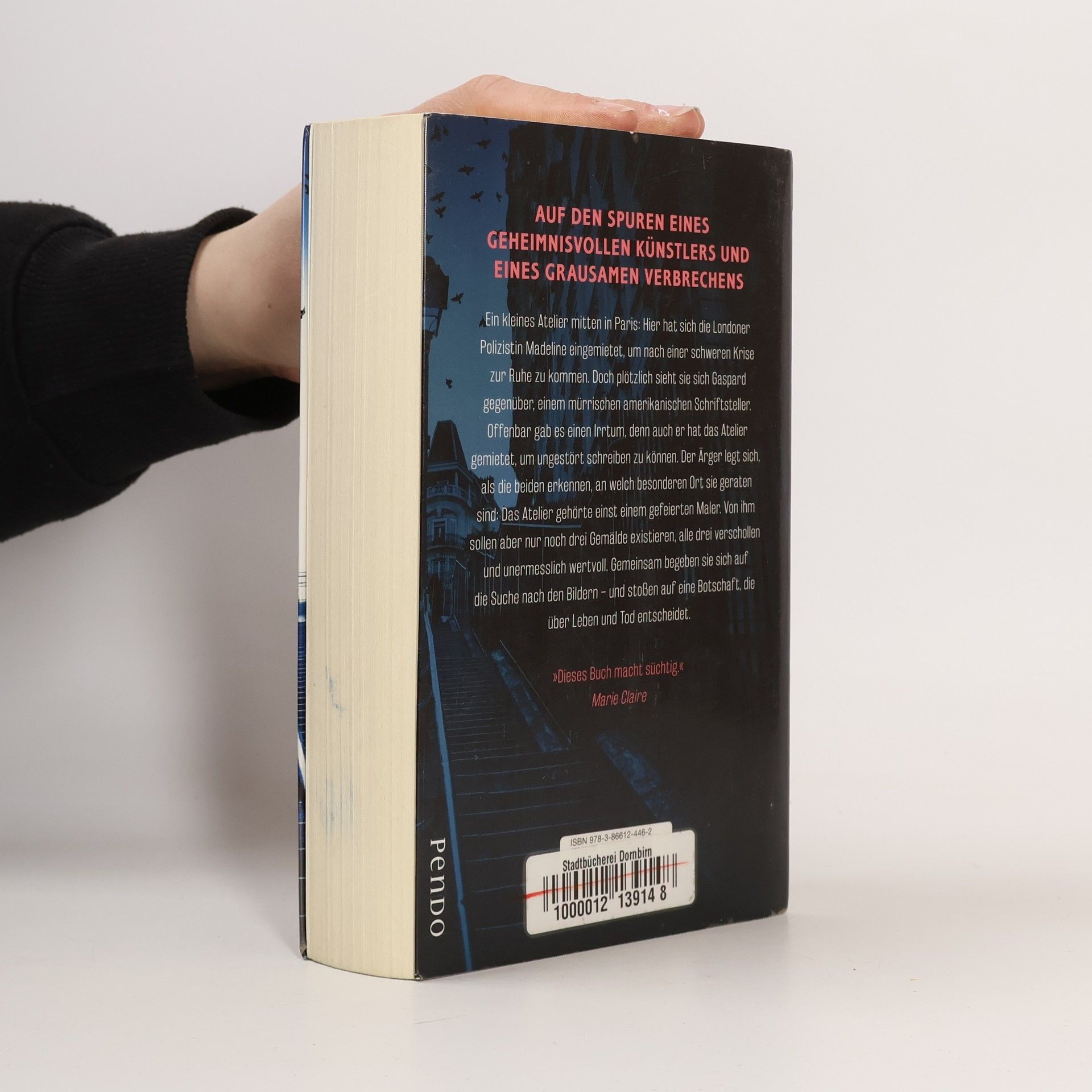 Ein abgelegenes kleines Atelier am Ende einer Allee, mitten in Paris: Hier hat sich die Londoner Polizistin Madeline eingemietet, um eine Weile abzuschalten. Doch plötzlich sieht sie sich Gaspard gegenüber, einem mürrischen amerikanischen Schriftsteller. Offenbar gab es einen Irrtum, denn auch er hat das Atelier gemietet, um in Ruhe schreiben zu können. Der Ärger legt sich, als die beiden erkennen, an welch besonderen Ort sie geraten sind. Das Atelier gehörte einst einem gefeierten Maler, von dem aber nur noch drei Gemälde existieren sollen – alle drei verschollen und unermesslich wertvoll. Als sie sich gemeinsam auf die Suche nach den Bildern begeben, wird ihnen schnell klar, dass den Maler ein grausames Geheimnis umgibt … Für Madeline und Gaspard beginnt eine spannende Jagd, die sie von Paris nach New York führt und sie nicht nur mit ungeahnten menschlichen Abgründen, sondern auch mit ihren eigenen Dämonen konfrontiert.