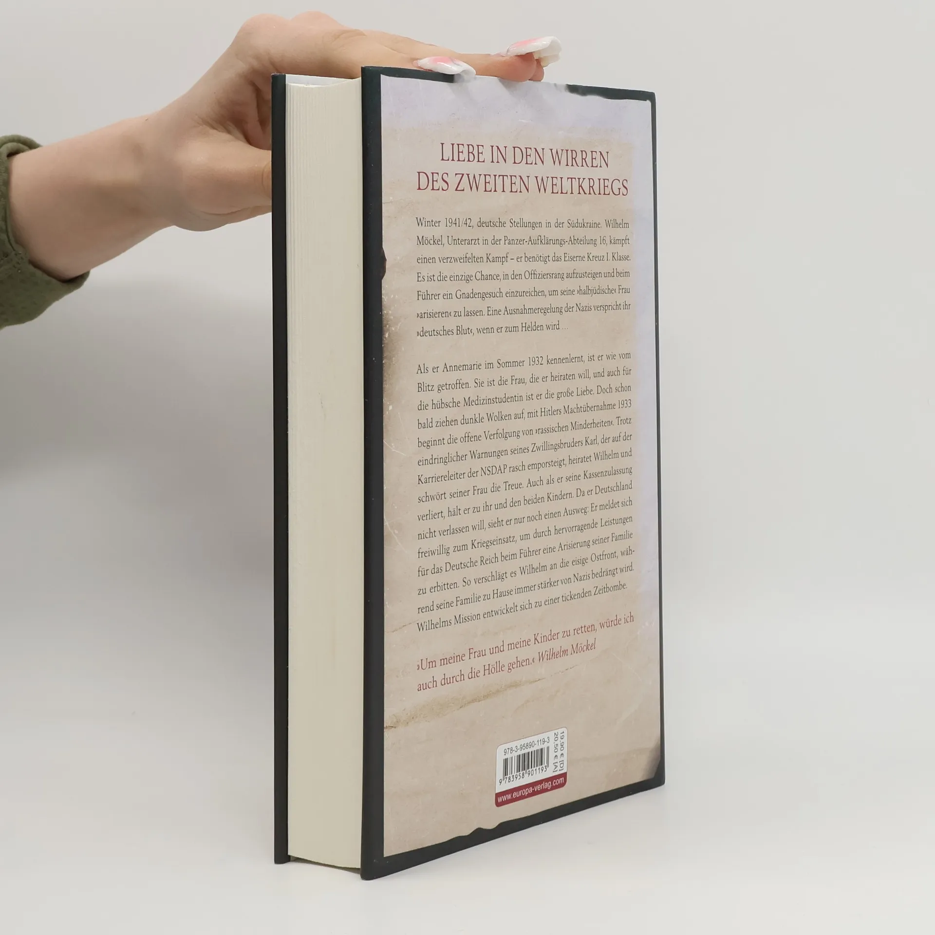 Im Winter 1941/42 kämpft Wilhelm Möckel, Unterarzt in der Panzer-Aufklärungs-Abteilung 16, verzweifelt an der Südukraine. Sein Ziel ist das Eiserne Kreuz I. Klasse, um in den Offiziersrang aufzusteigen und beim Führer ein Gnadengesuch für seine halbjüdische Frau Annemarie einzureichen. Eine Ausnahme der Nazis könnte ihr „deutsches Blut“ zusichern, wenn er zum Helden wird. Wilhelm und Annemarie verlieben sich 1932, doch ihre glückliche Zeit wird von der politischen Lage überschattet. Mit Hitlers Machtübernahme 1933 beginnt die Verfolgung von Regimegegnern und „rassischen Minderheiten“. Trotz der Warnungen seines Zwillingsbruders Karl, der in der NSDAP Karriere macht, heiratet Wilhelm und bleibt seiner Frau treu, auch als er seine Kassenzulassung verliert. Um seine Familie zu schützen, meldet er sich freiwillig zum Kriegseinsatz, in der Hoffnung, durch hervorragende Leistungen eine Arisierung für sie zu erbitten. An der Ostfront beginnt im eisigen Winter die russische Gegenoffensive, während Annemarie und die Kinder zu Hause zunehmend von NSDAP-Anhängern bedrängt werden. Wird Wilhelm rechtzeitig sein Ziel erreichen?