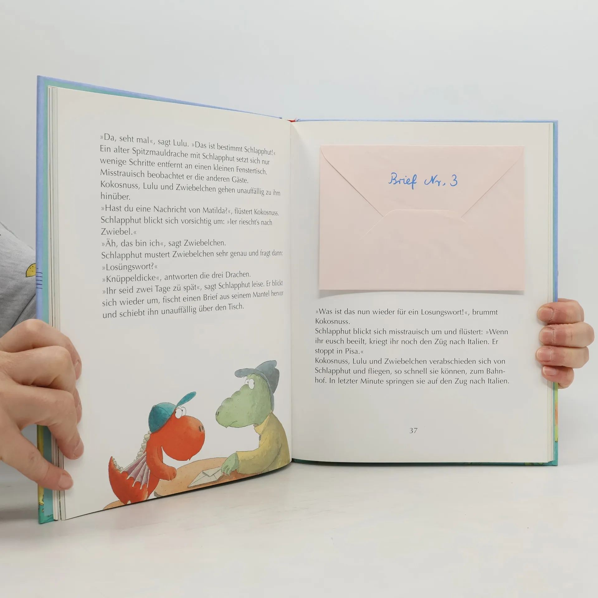Die aufregende Weltreise vom kleinen Drachen Kokosnuss – mit echten Briefen zum Herausnehmen! Der kleine Drache Kokosnuss ist entsetzt: Der fiese Murk hat seinen Freund Oskar entführt! Spurlos sind beide verschwunden. Spurlos? Nein, zum Glück nicht ganz. Oskar konnte einen Brief mit Hinweisen hinterlassen und der führt Kokosnuss direkt nach – London! Riesig ist die Stadt der Regenschirmträger und Teetrinker, aber der Murk ist längst weitergereist. Zunächst nach Paris zum Eiffelturm, dann nach Pisa, wo man schiefe Türme mag. Und dann führen Oskars Briefe nach China. Ob es Kokosnuss am Ende gelingt, Oskar zu befreien? Dies wird im aufregenden Abenteuer von Kokosnuss’ Weltreise erzählt. In dieser Ausgabe im extra großen Vorleseformat ist in jedem Kapitel ein Briefumschlag eingeklebt – mit echten Briefen zum Herausnehmen! Ausstattung: Mit fbg. Illustrationen + integrierten Briefen; Mit echten Briefen