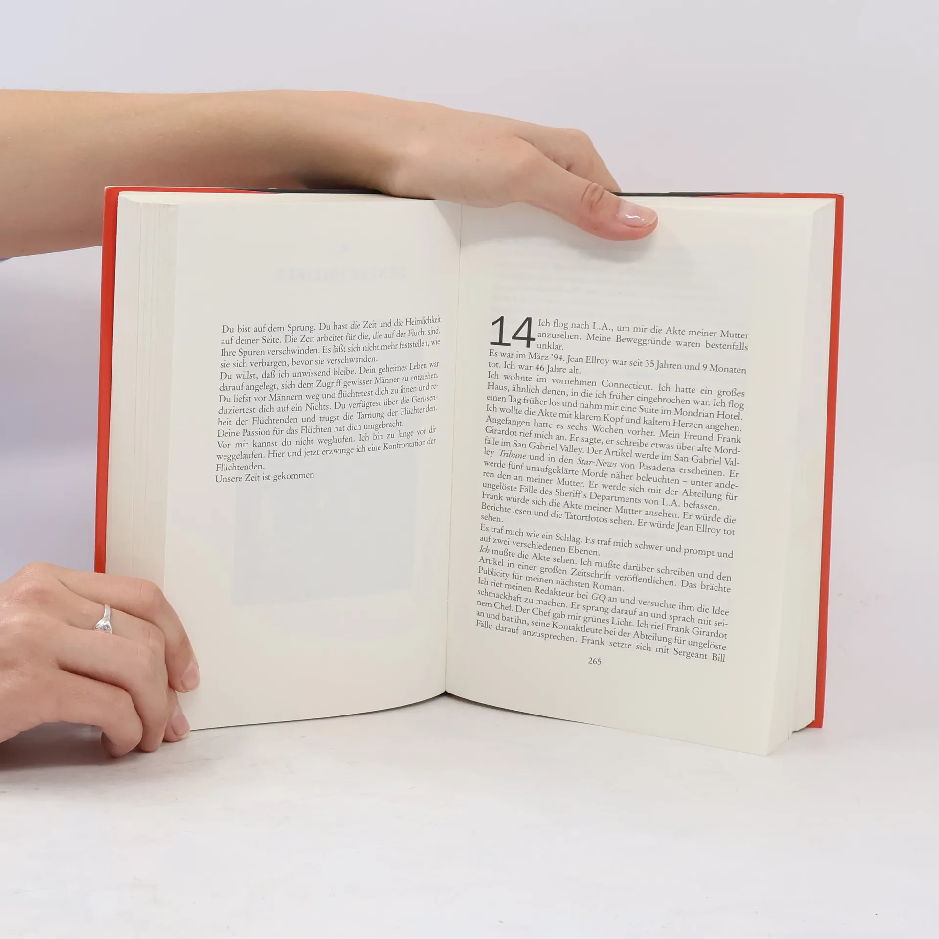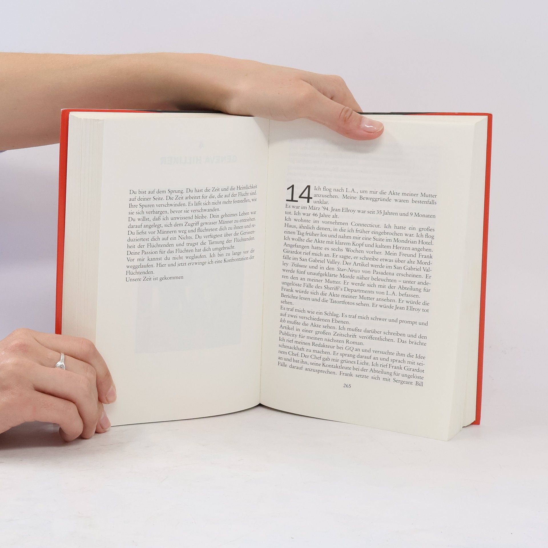 Ein ungelöster Mord wird zum tragischen Beginn eines Schriftstellerlebens Geneva “Jean” Ellroy wurde 1958 in einem schäbigen Vorort von L.A. vergewaltigt und ermordet. Der Täter wurde nie gefasst, die Ermittlungen eingestellt und der Fall als tragischer Ausgang einer durchzechten Nacht ad acta gelegt. James Ellroy war damals zehn Jahre alt. Der Mord an seiner Mutter wurde seine Obsession. In den kommenden Jahrzehnten hat er die verstörenden Erinnerungen abwechselnd verdrängt und im Schreiben heraufbeschworen. Erst 1994 stellt er sich dem Trauma seines Lebens. Zusammen mit dem pensionierten Detective Bill Stoner begibt Ellroy sich auf die Suche: nach seiner Mutter, ihrem Mörder – und seiner Erlösung.