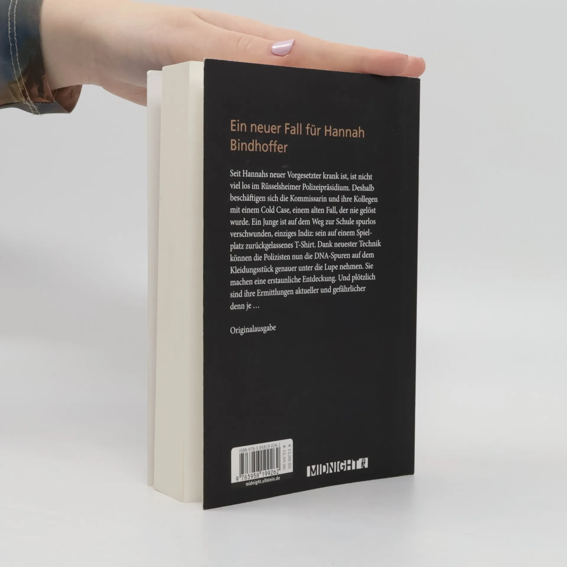 Ein neuer Fall für Hannah Bindhoffer Seit Hannahs neuer Vorgesetzter krank ist, ist nicht viel los im Rüsselsheimer Polizeipräsidium. Deshalb beschäftigen sich die Kommissarin und ihre Kollegen mit einem Cold Case, einem alten Fall, der nie gelöst wurde. Ein Junge ist auf dem Weg zur Schule spurlos verschwunden, einziges Indiz: sein auf einem Spielplatz zurückgelassenes T-Shirt. Dank neuester Technik können die Polizisten nun die DNA-Spuren auf dem Kleidungsstück genauer unter die Lupe nehmen. Sie machen eine erstaunliche Entdeckung. Und plötzlich sind ihre Ermittlungen aktueller und gefährlicher denn je … Von Sandra Hausser sind bei Midnight by Ullstein in der Rhein-Main-Krimi-Reihe erschienen: Tod auf leisen Pfoten (Fall 1) Cold Case – Spurlos (Fall 2) Düstere Rache (Fall 3)